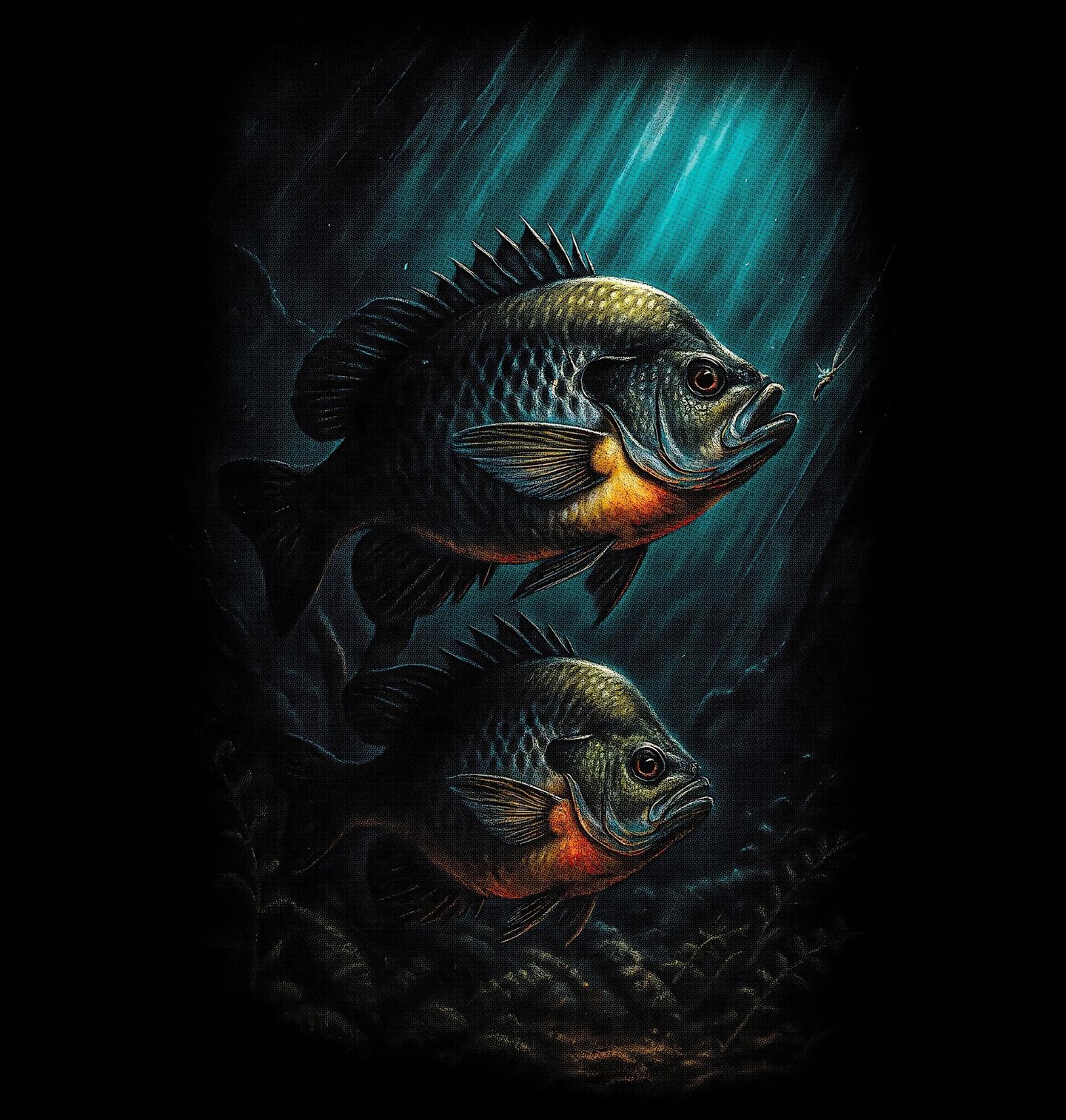 Dámské tričko Slunečnice velkoploutvá. Motiv zobrazuje slunečnici velkoploutvou (Lepomis macrochirus), výraznou a barevně atraktivní sladkovodní rybu, která je známá svou zvědavostí a rychlými reakcemi na nástrahu. Typické velké prsní ploutve, kontrastní zbarvení a bystré oko dávají motivu živost a hloubku. Motiv potěší každý rybář, který má blízko k přírodě, jemnému lovu a estetice sladkovodního světa.