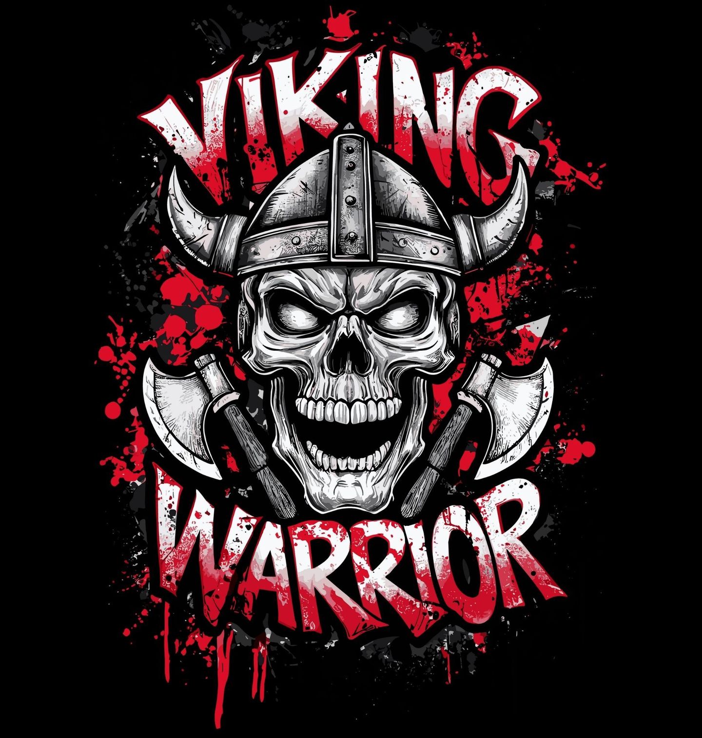 Pánské tričko Smrtící Bojovník se Sekerami Viking Warrior. Tento drsný a energický motiv zobrazuje lebku vikingského bojovníka s přilbou a dvěma sekerami, doplněnou o krvavé šplíchance, které symbolizují nekompromisní boj, odvahu a válečnou čest. Design je inspirovaný severskou mytologií a představou bojovníka, který se nikdy nevzdává.