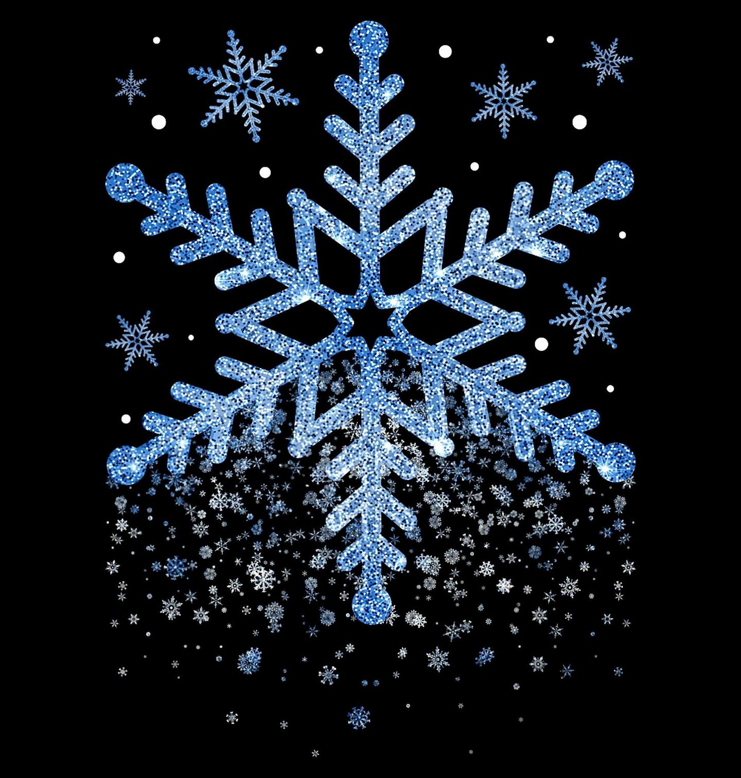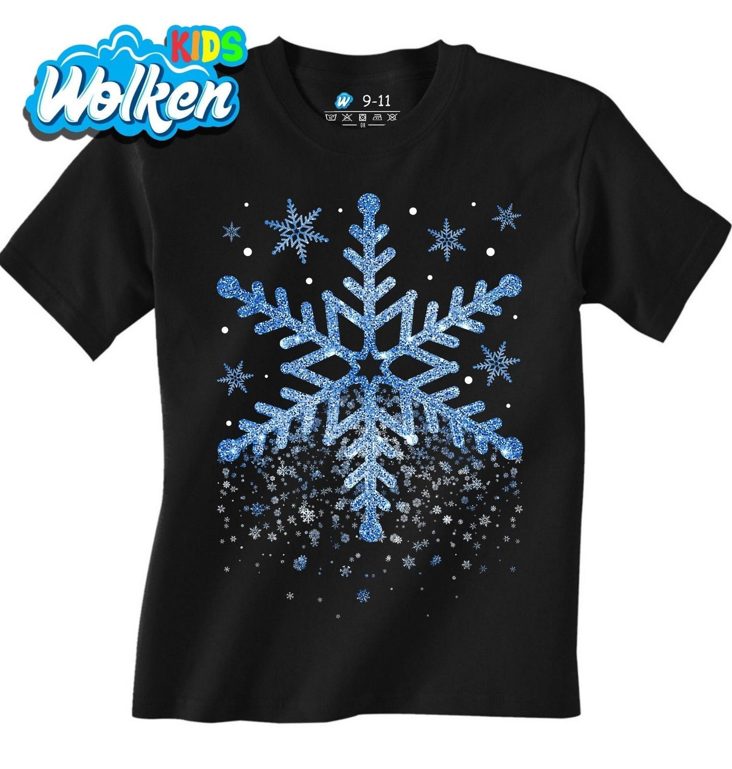 Dětské tričko Sněhová Vánoční Vločka. Oslavte Vánoce stylově s tímto jedinečným motivem! Třpytivá vločka zářící na černém pozadí přináší do každého outfitu kouzlo zimy a radost, kterou přinese jen první sníh. Perfektní volba pro zimní období, milovníky ledových motivů i vánočních svátků.