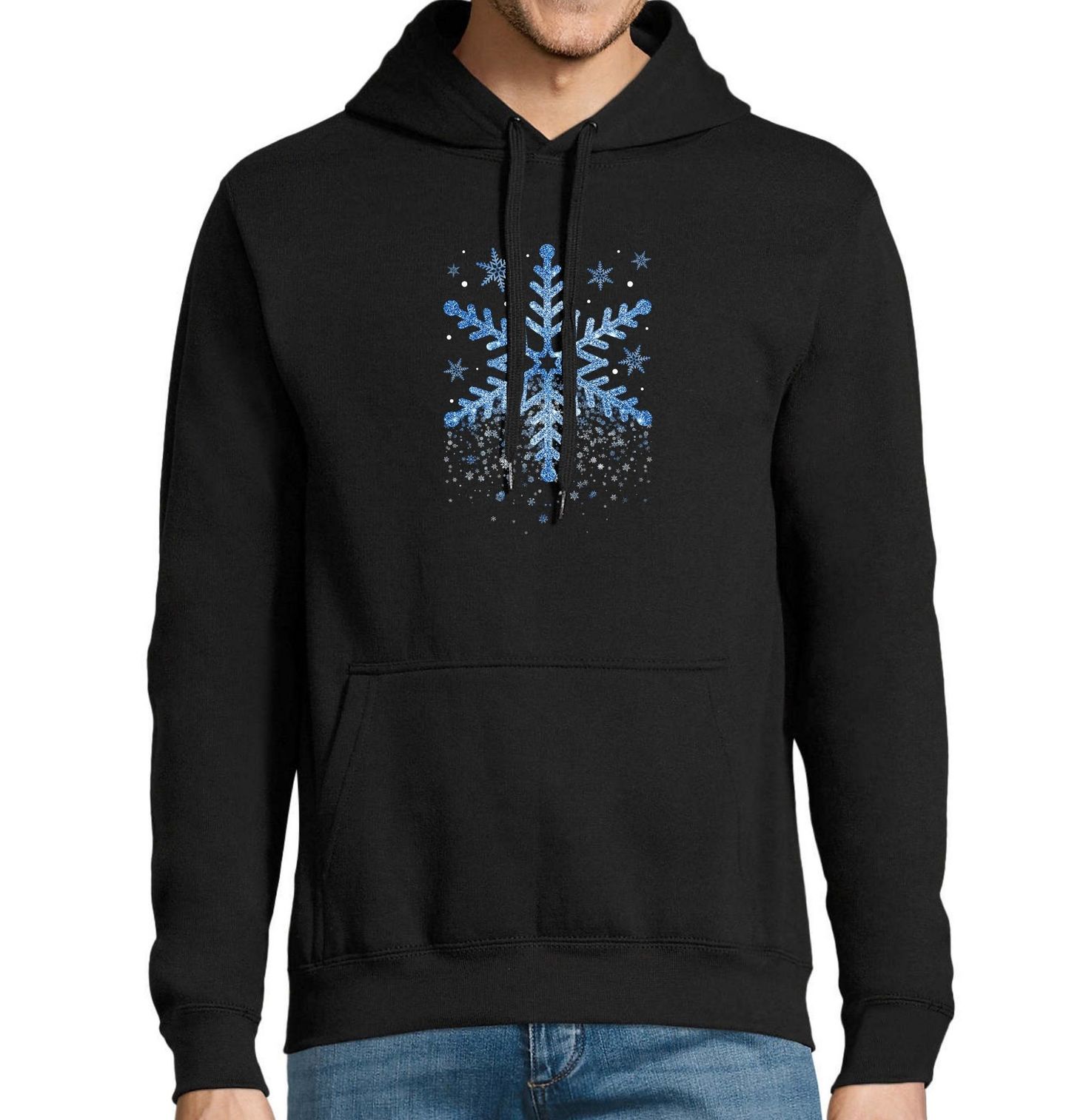 Pánská mikina Sněhová Vánoční Vločka. Oslavte Vánoce stylově s tímto jedinečným motivem! Třpytivá vločka zářící na černém pozadí přináší do každého outfitu kouzlo zimy a radost, kterou přinese jen první sníh. Perfektní volba pro zimní období, milovníky ledových motivů i vánočních svátků.