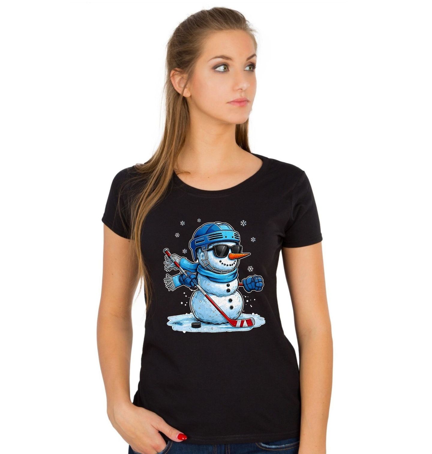 Dámské tričko Sněhulák Hokejista. Stylový hokejista připravený vyrazit na led ukazuje, že zimní sporty a sváteční pohoda patří k sobě. Ideální dárek pro fanoušky hokeje i pro ty, kteří chtějí oslavit Vánoce s humorem a sportovní energií. Vánoce a hokej – dokonalá kombinace pro každého, kdo miluje led, puk a veselou atmosféru.