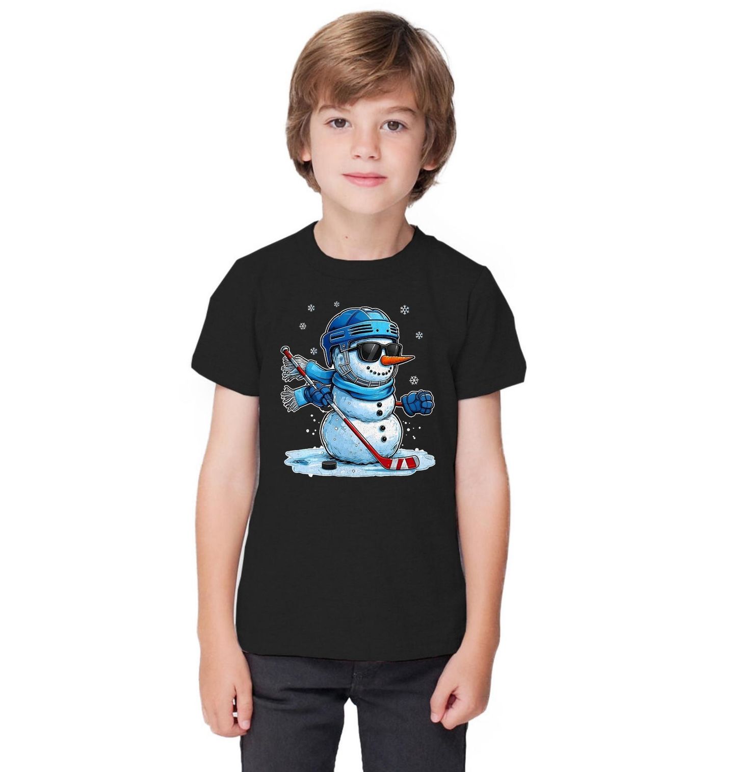 Dětské tričko Sněhulák Hokejista. Stylový hokejista připravený vyrazit na led ukazuje, že zimní sporty a sváteční pohoda patří k sobě. Ideální dárek pro fanoušky hokeje i pro ty, kteří chtějí oslavit Vánoce s humorem a sportovní energií. Vánoce a hokej – dokonalá kombinace pro každého, kdo miluje led, puk a veselou atmosféru.
