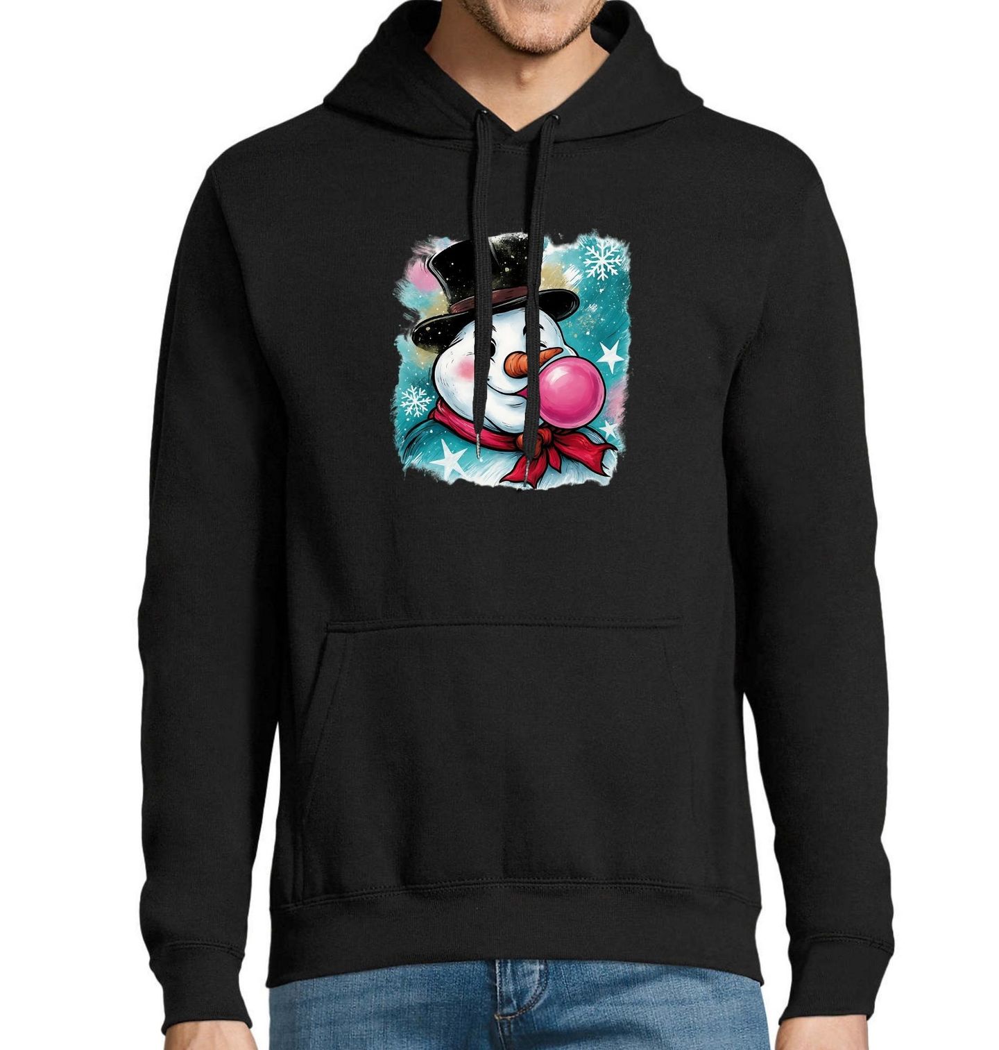 Pánská mikina Sněhulák se Žvýkačkou. Stylový sněhulák, který místo tradičního úsměvu fouká bublinu ze žvýkačky, přináší do Vánoc trochu rebelství a hravosti! Tento design je ideální volbou pro každého, kdo miluje Vánoce, humor a nebojí se vyčnívat z davu.