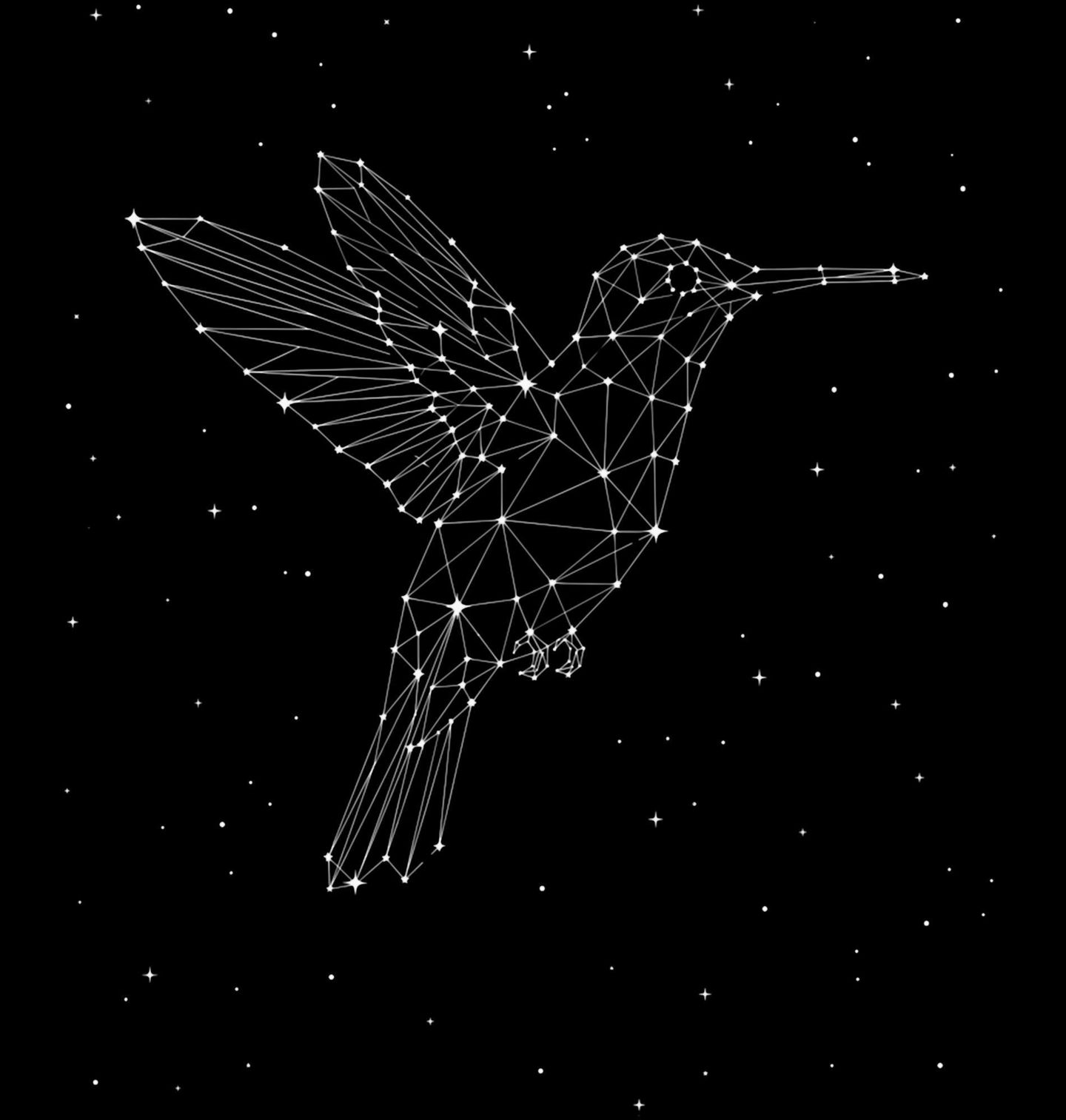 Pánské tričko Souhvězdí Kolibříka. Elegantní motiv zobrazující kolibříka vytvořeného z jemných linií a bodů připomínajících hvězdy. Tento originální design působí jako skutečné souhvězdí, které na noční obloze formuje tvar tohoto jedinečného ptáka. Kolibřík jako symbol lehkosti a svobody v kombinaci s hvězdami vytváří harmonický a nadčasový celek.