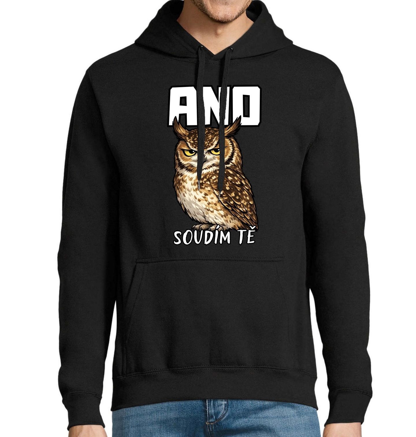 Pánská mikina Sova ANO Soudím tě. Tento originální design je ideální pro každého, kdo má smysl pro ironii, suchý humor a nebojí se dát najevo svůj postoj. Sova je symbolem moudrosti, inteligence a bystrého úsudku. Právě proto je tento motiv perfektní volbou pro ty, kteří rádi pozorují svět kolem sebe a mají na všechno svůj názor.