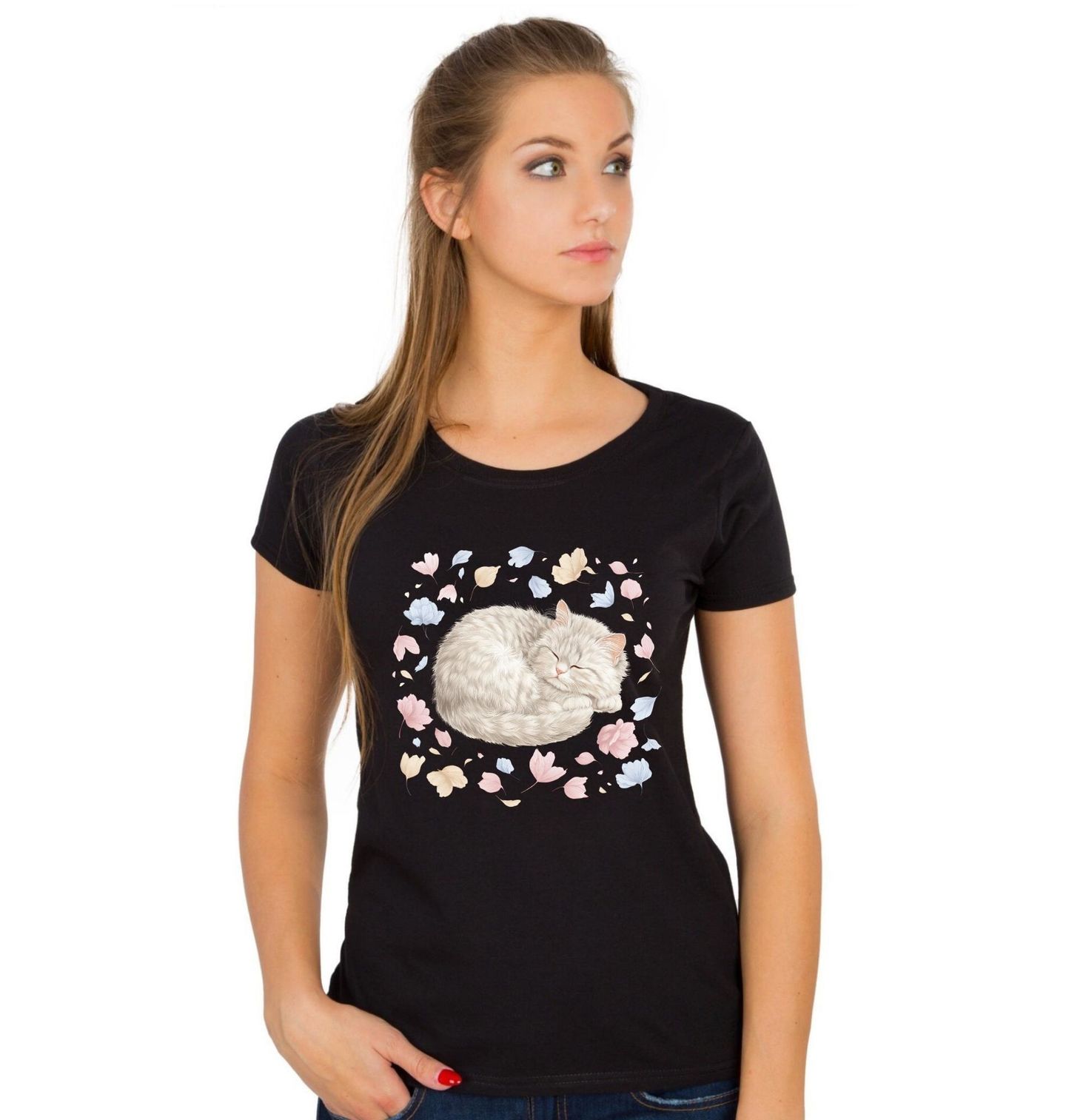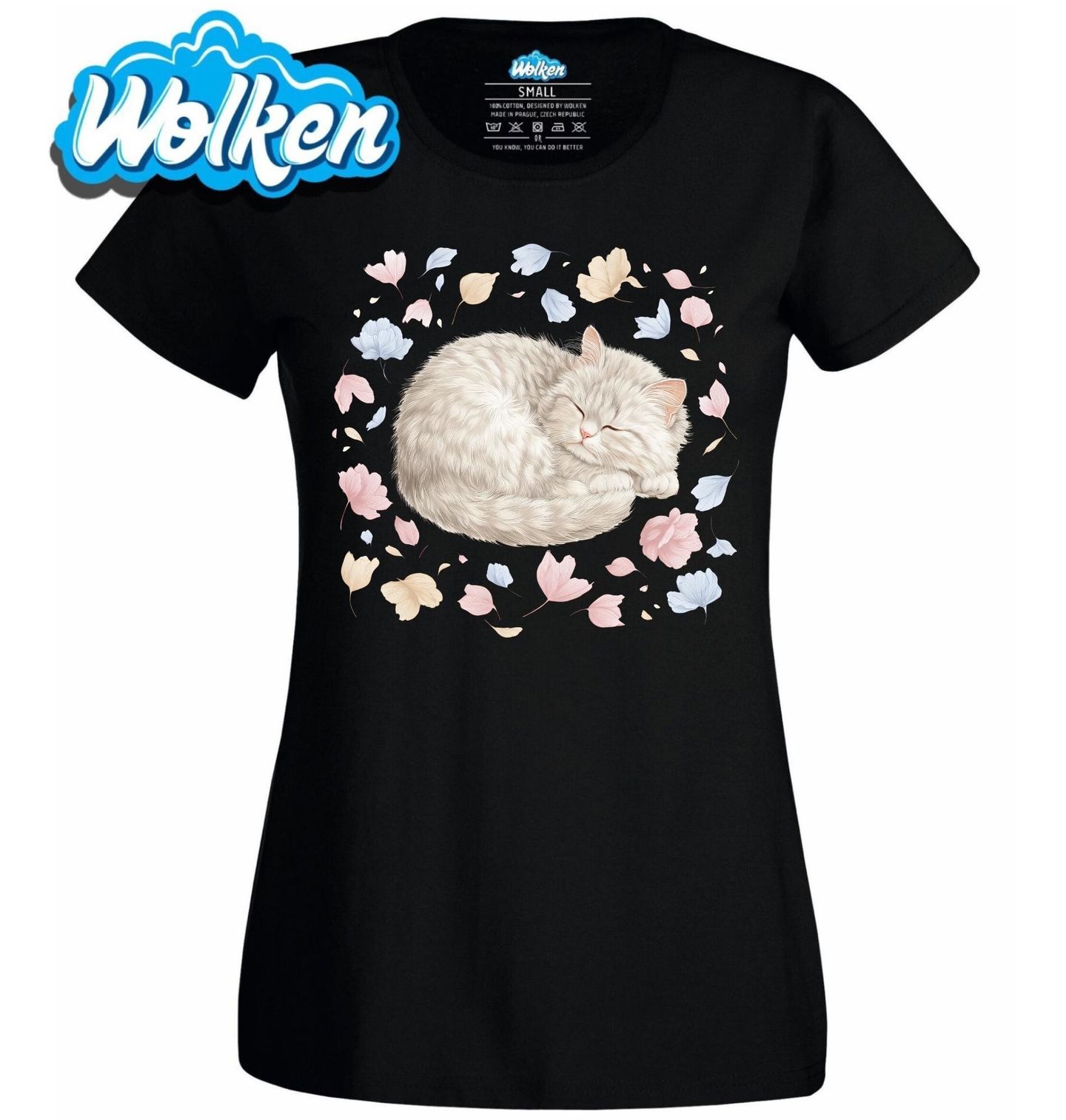 Dámské tričko Spící Bílá Kočka mezi Květy
