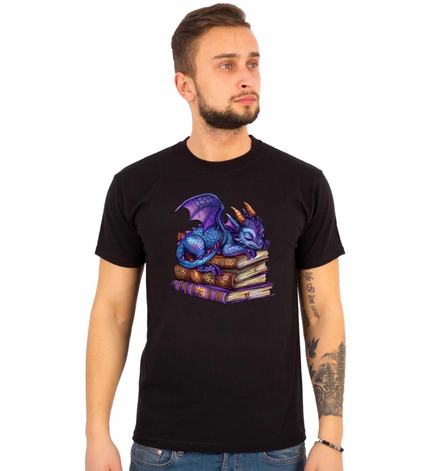 Pánské tričko Spící Fialový Drak na Knihách