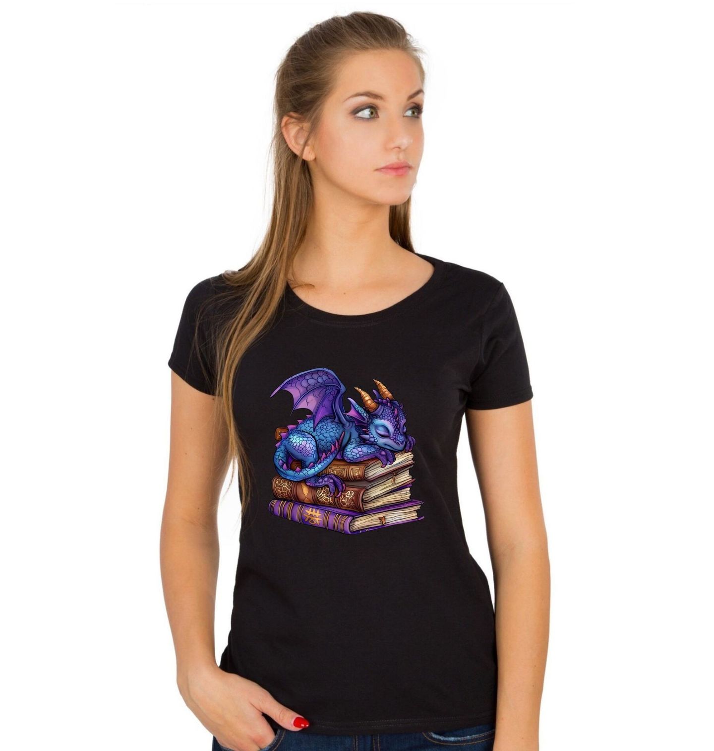 Dámské tričko Spící Fialový Drak na Knihách