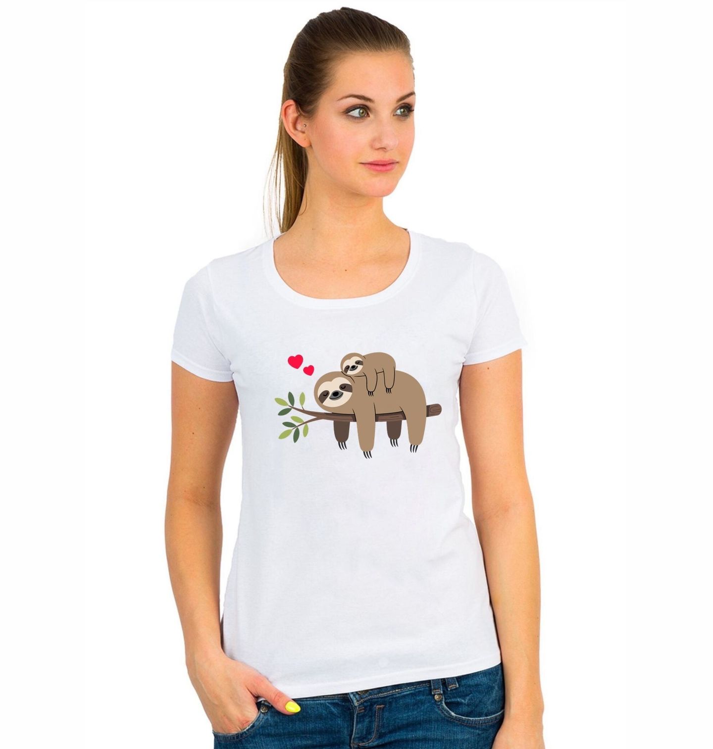 Dámské tričko Spící Lenochod s Mládětem. Lenochod je symbolem klidu, nadhledu a schopnosti zastavit se, zatímco spánek zde představuje regeneraci a únik od každodenního shonu. Tento motiv osloví všechny, kteří milují pomalý životní styl, relax a pozitivní energii spojenou s odpočinkem.