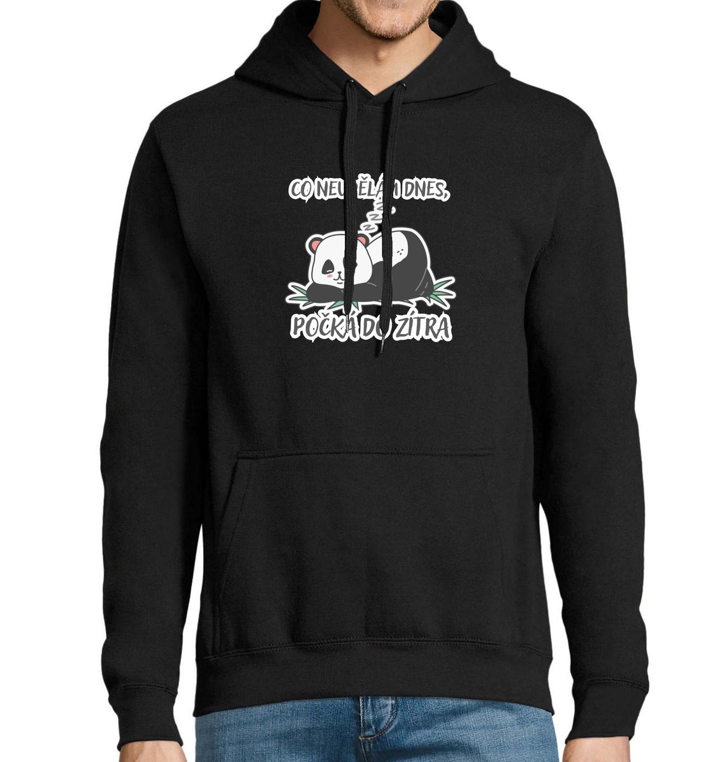 Pánská mikina Spící Panda Co neudělám dnes, počká do zítra. Tahle ospalá panda se nestresuje – ví, že svět se nezboří, když si dáš ještě jednoho šlofíka. Ideální pro všechny pohodáře, kteří si umí užívat život bez zbytečného spěchu. Perfektní dárek pro lenochy, snílky i ty, co mají „pohodičku“ jako životní styl.