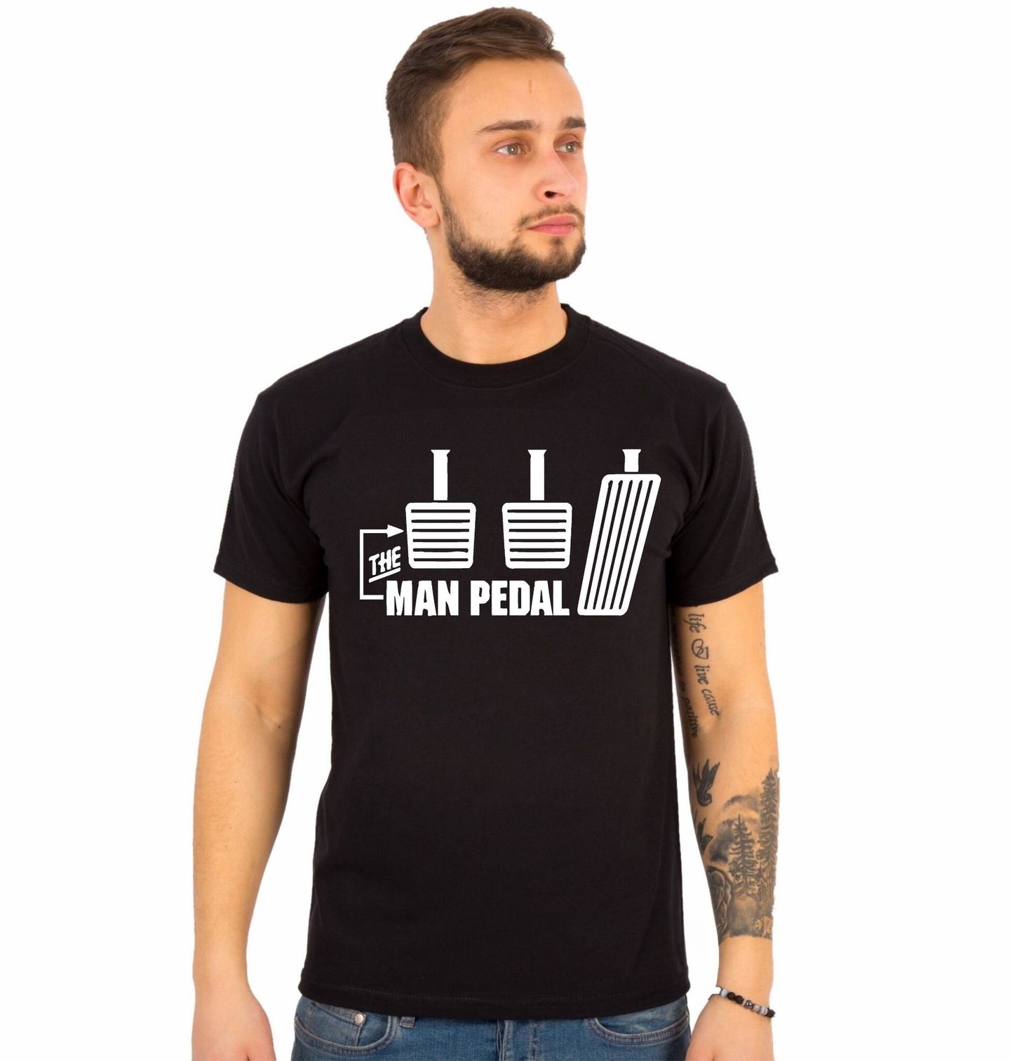 Pánské tričko Spojka The Man Pedal. Stylový motiv pro všechny, kteří vědí, že pravý zážitek z jízdy začíná tam, kde má auto tři pedály. Design zobrazuje spojku, brzdu a plyn a zvýrazňuje ten nejdůležitější – spojku, tedy tzv. „man pedal“. „The Man Pedal“ znamená „Mužský pedál“ – jde o slangové označení pro spojkový pedál u manuální převodovky.