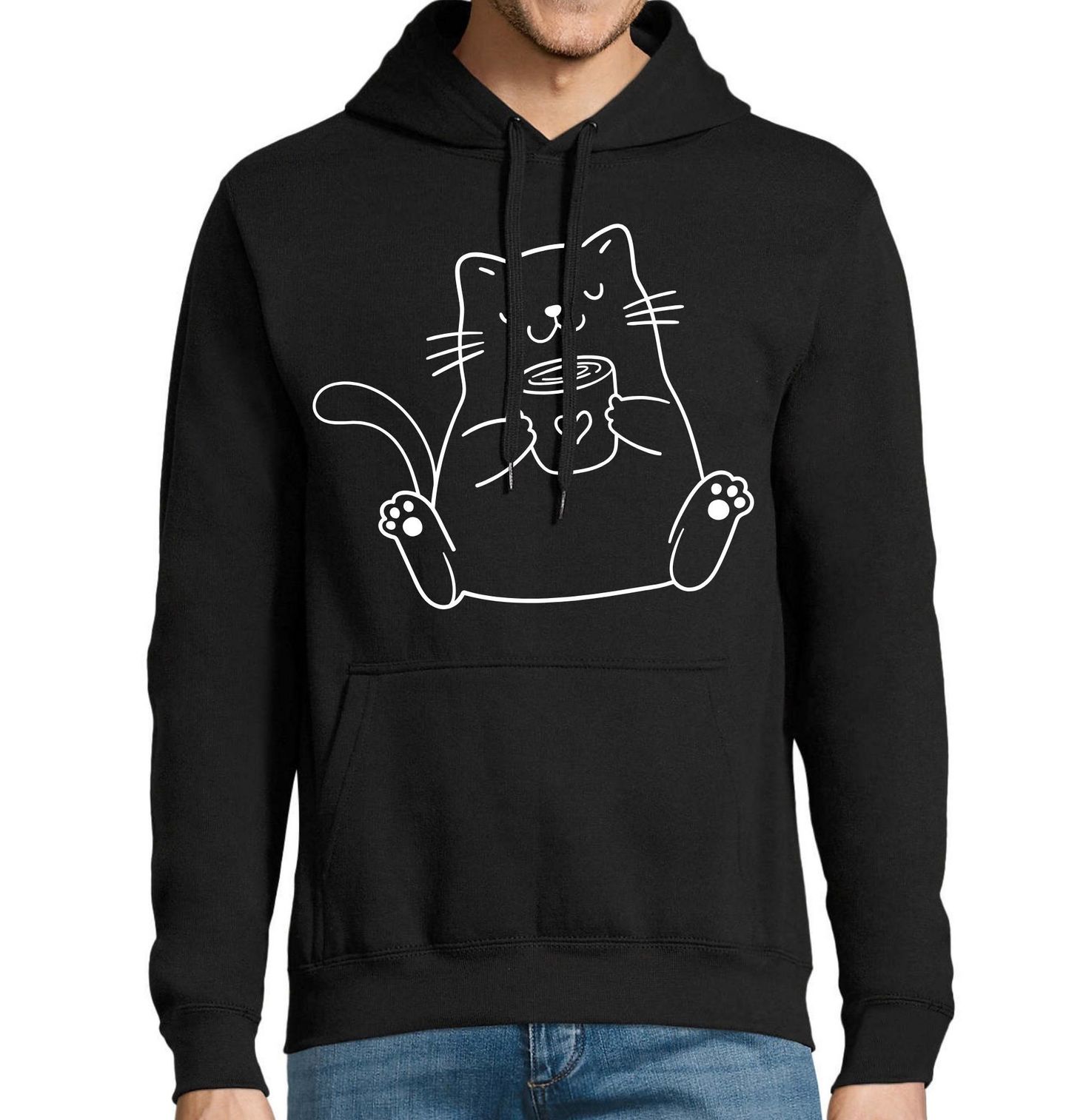 Pánská mikina Spokojená Kočka s Šálkem. Roztomilá kočka, co sedí pohodlně a drží hrnek s nápojem ozdobený srdíčkem. Zavřené oči a klidný výraz naznačují dokonalý moment relaxace a pohody. Motiv působí mile, útulně a připomíná chvíle odpočinku s oblíbeným nápojem. Vhodný dárek pro milovníky koček a pohody.