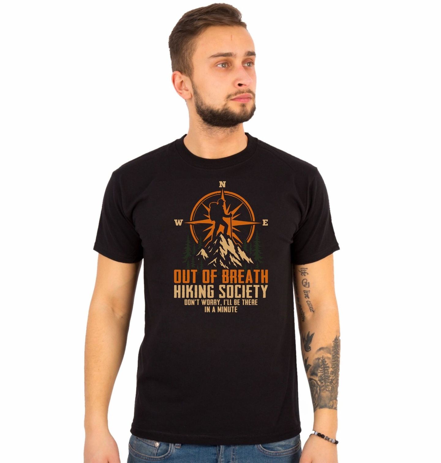 Pánské tričko Spolek zadýchaných turistů Out of Breath Hiking Society. “Don’t worry, I’ll be there in a minute” = „Neboj, budu tam za minutku“. Stylový motiv pro všechny milovníky hor, turistiky a svobody v přírodě. Tento design spojuje siluetu horolezce na vrcholu hory s výrazným symbolem kompas, který připomíná směr, odvahu a chuť objevovat nové cesty. Motiv je ideální pro každého, kdo miluje turistiku, horské výšlapy a dobrodružství v přírodě.