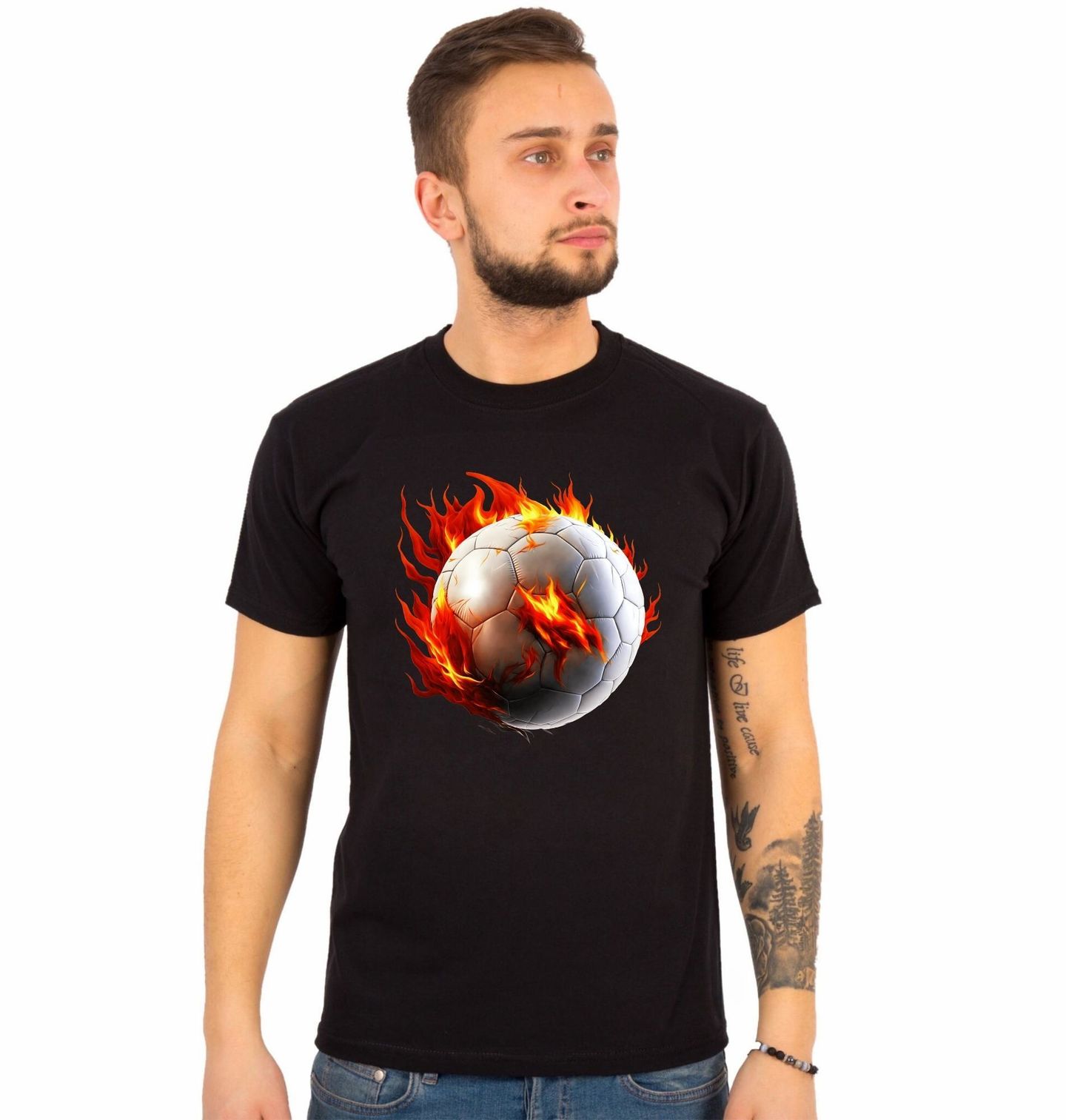 Pánské tričko Sportovní Míč v Plamenech. Když sport není jen záliba, ale vášeň! Tento výrazný potisk zobrazuje detailní míč v plamenech, symbolizující energii, zápal a odhodlání, které k pohybu neodmyslitelně patří. Ať už hraješ fotbal, házenou nebo jiný míčový sport, tenhle motiv tě rozzáří jako tvůj vlastní zápal pro hru.