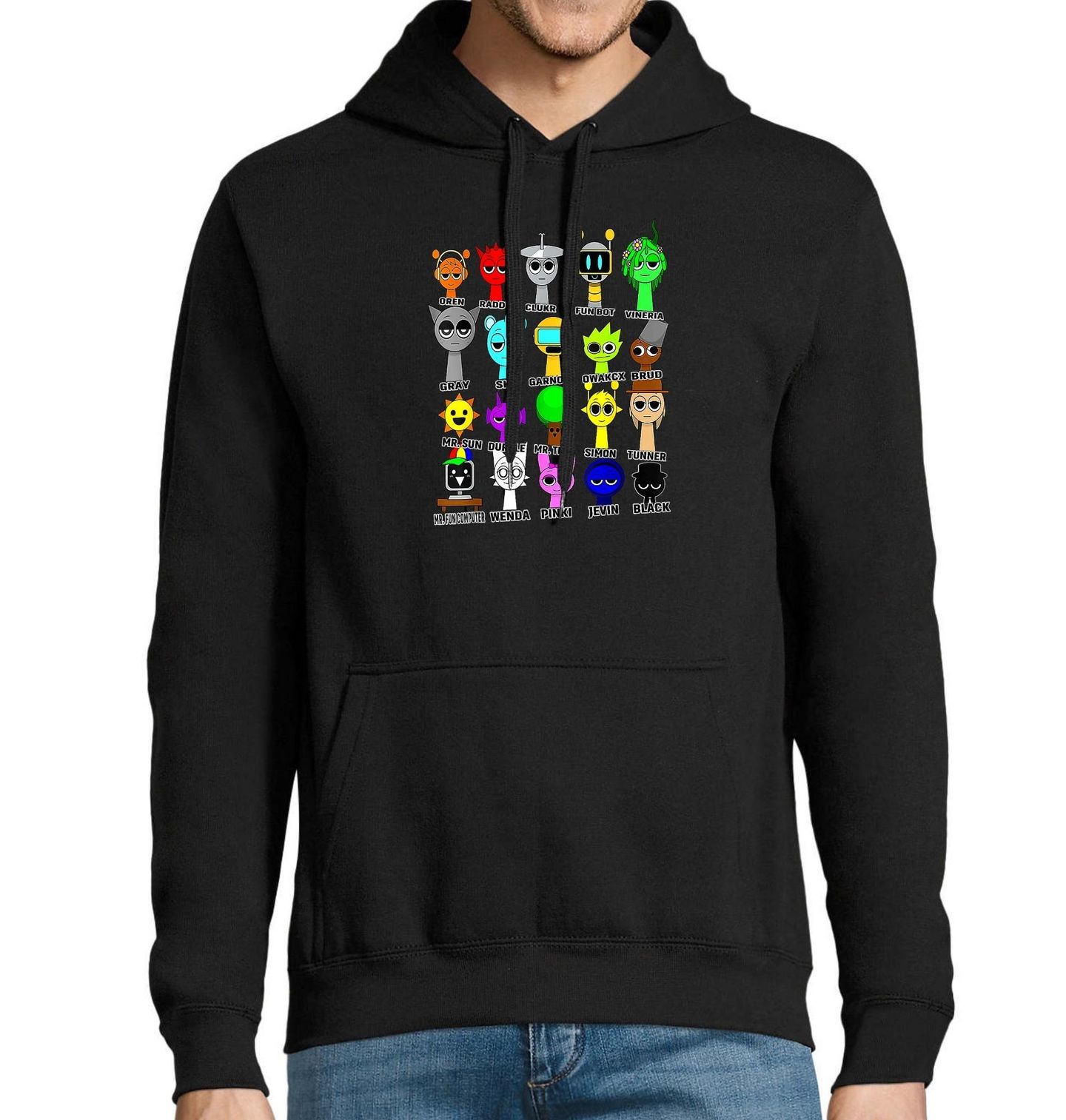 Pánská mikina Sprunki Postavičky. Tričko pro každého fanouška fenoménu Sprunki a internetové kultury! Tento motiv přináší celou plejádu ikonických Sprunki postaviček – od Orena a Raddyho až po Mr. Sun a Pinki – všechny připravené rozzářit váš outfit svými barvami a energií. Meme styl tohoto designu je okamžitě rozpoznatelný a ideální pro ty, kdo milují spojení hudby, humoru a vizuálního chaosu.