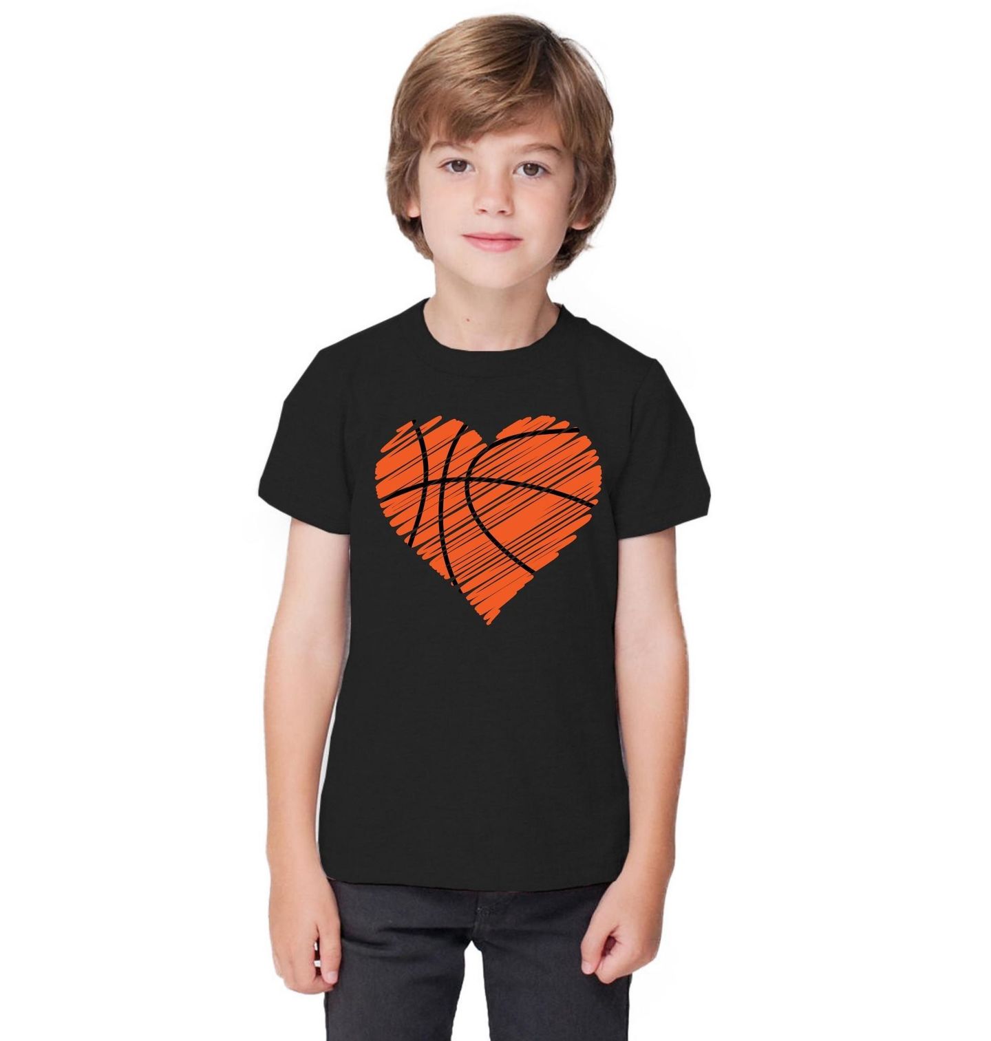 Dětské tričko Srdce Basketbalu. Tento něžný a zároveň výrazný motiv spojuje basketbal a srdce – protože kdo jednou propadne oranžovému míč, ten ví, že sport může být opravdová láska. Design ve tvaru srdce s typickými liniemi basketbalového míč je ideální pro hráče, fanoušky i trenéry, kteří chtějí ukázat, že jejich srdce bije pro basketbal.