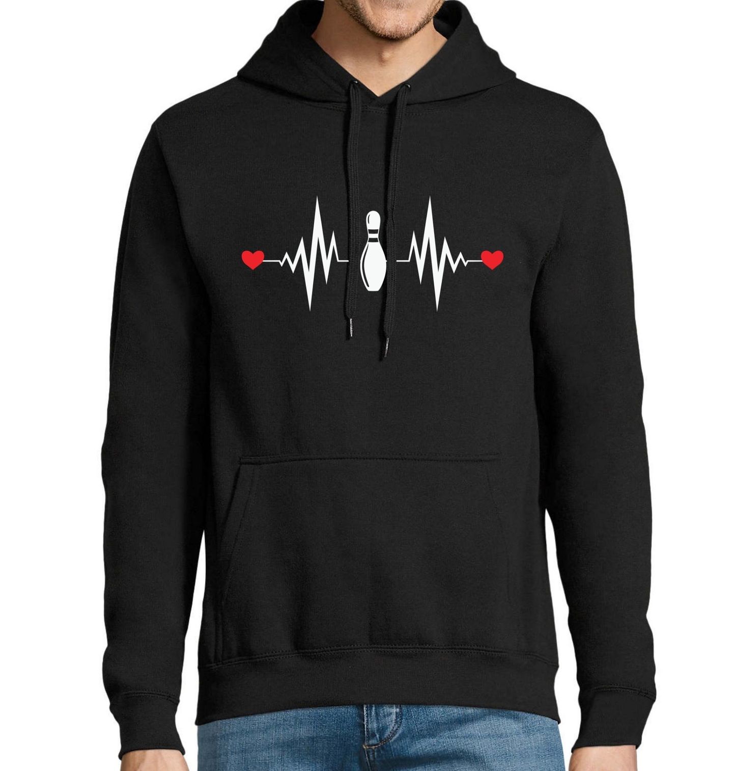 Pánská mikina Srdce bije pro Bowling. Když je bowling víc než jen hra – je to srdeční záležitost! Stylové tričko s motivem kardiogramu a kuželky je ideální pro všechny, kterým srdce bije v rytmu hodů. Ať už jsi profík nebo rekreační hráč, ukaž svou vášeň i mimo dráhu.
