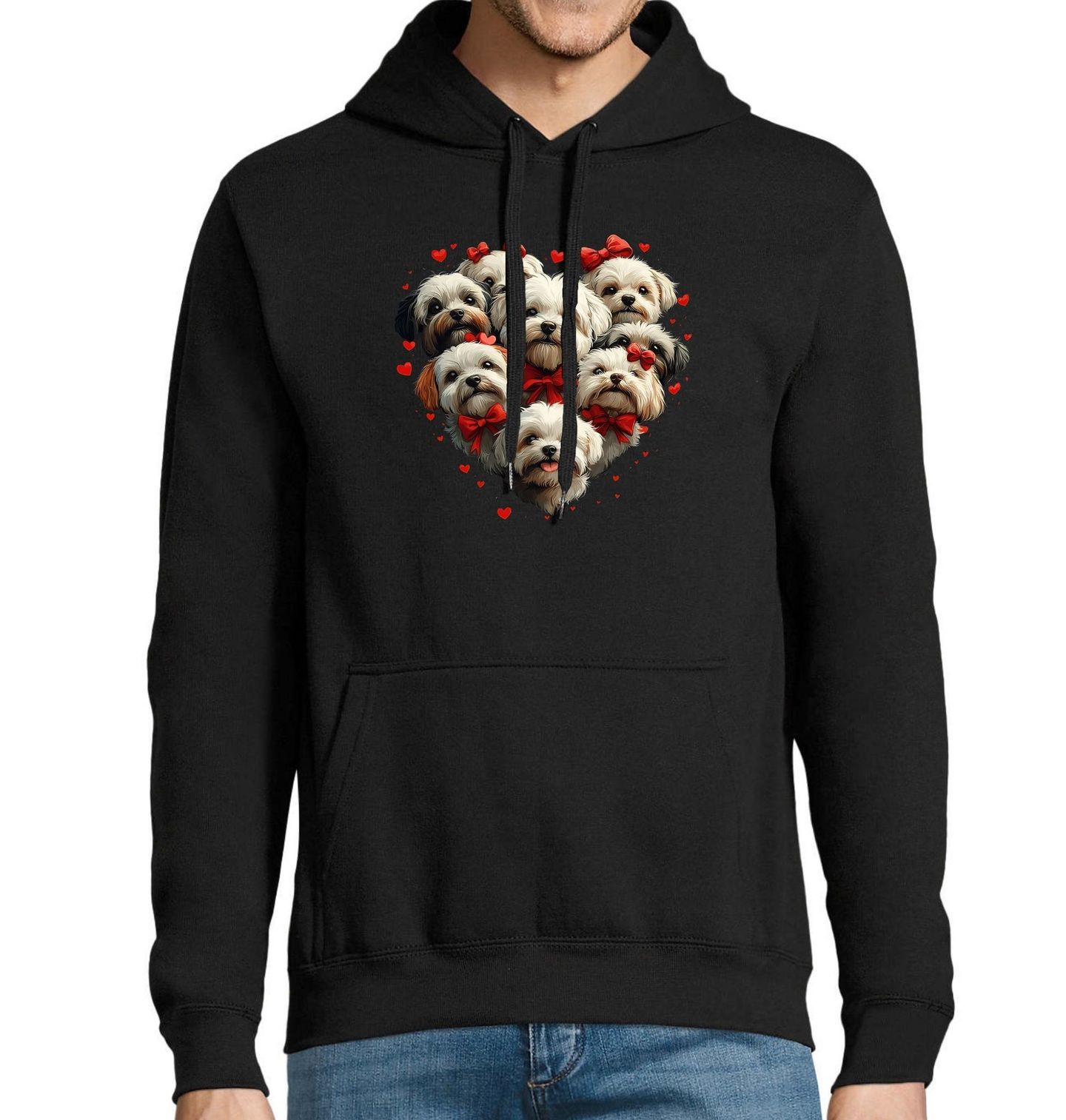Pánská mikina Srdce plné maltézáků. Roztomilá tlupa maltézských psíků ve tvaru srdce ti vykouzlí úsměv na tváři každý den. S červenými mašličkami a srdíčky kolem působí něžně, ale zároveň stylově. Ideální pro všechny pejskaře a pro ty pro které je pes nejlepším přítelem.