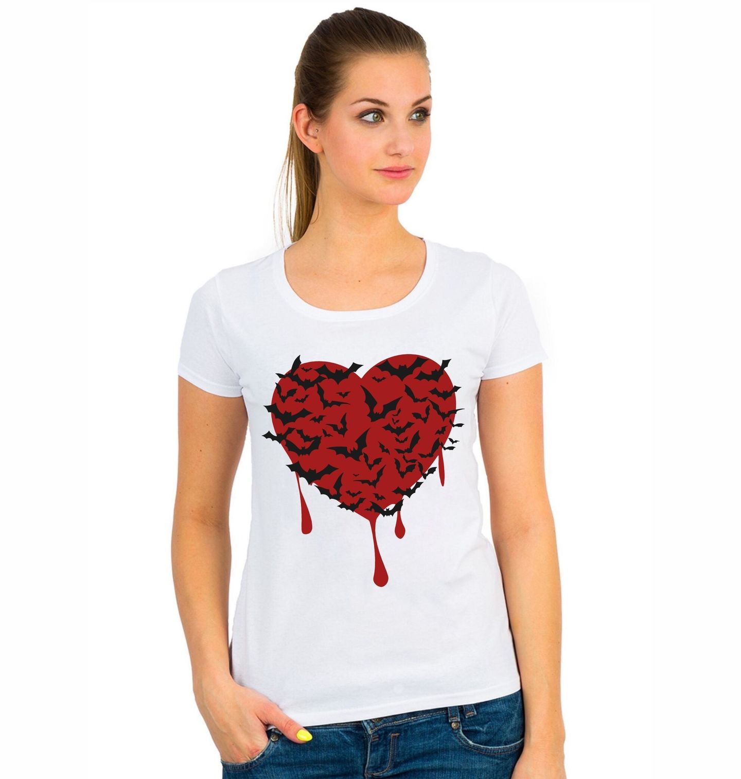 Dámské tričko Srdce s Netopýry. Temný a výrazný motiv srdce tvořeného netopýry s efektem kapající krve. Design kombinuje romantiku s gotickým stylem. Perfektní pro milovníky gothic stylu, netopýrů a Halloween motivů.