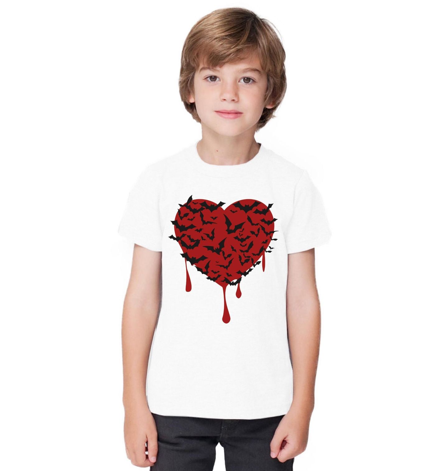 Dětské tričko Srdce s Netopýry. Temný a výrazný motiv srdce tvořeného netopýry s efektem kapající krve. Design kombinuje romantiku s gotickým stylem. Perfektní pro milovníky gothic stylu, netopýrů a Halloween motivů.