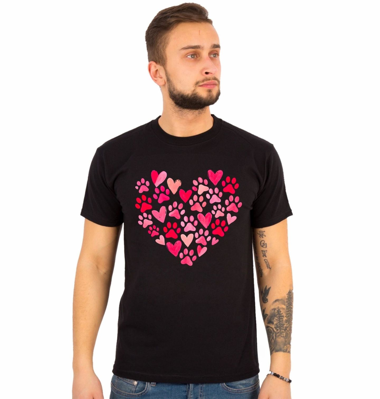 Pánské tričko Srdce ze Psích Tlapek. Srdce složené z růžových tlapek symbolizuje lásku, kterou má každý pejskař ke svému parťákovi. Jednoduchý, hravý a emotivní design je ideální pro všechny, kteří vědí, že pes má v životě i v srdci své pevné místo. Každá tlapka symboluje jedinečného psa.
