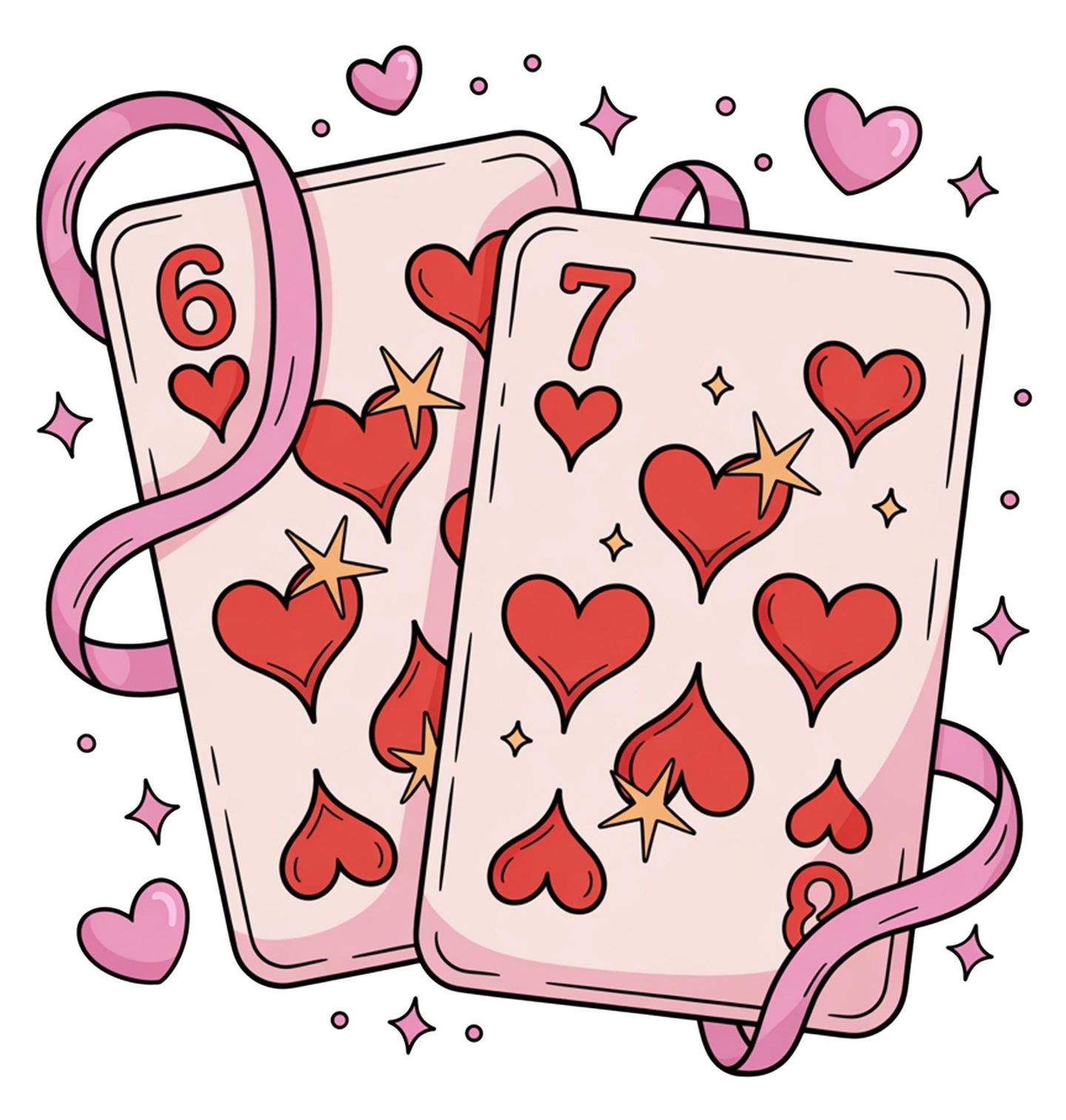 Pánské tričko Srdcové Karty 67 Six Seven. Hravý a originální motiv inspirovaný světem karet, humoru a internetových trendů. Na motivu je srdcová karta 6 a 7 six seven, která se stala oblíbeným meme mezi fanoušky karetních her i popkultury. Skvěle se hodí jako dárek pro hráče a milovníky meme kultury.