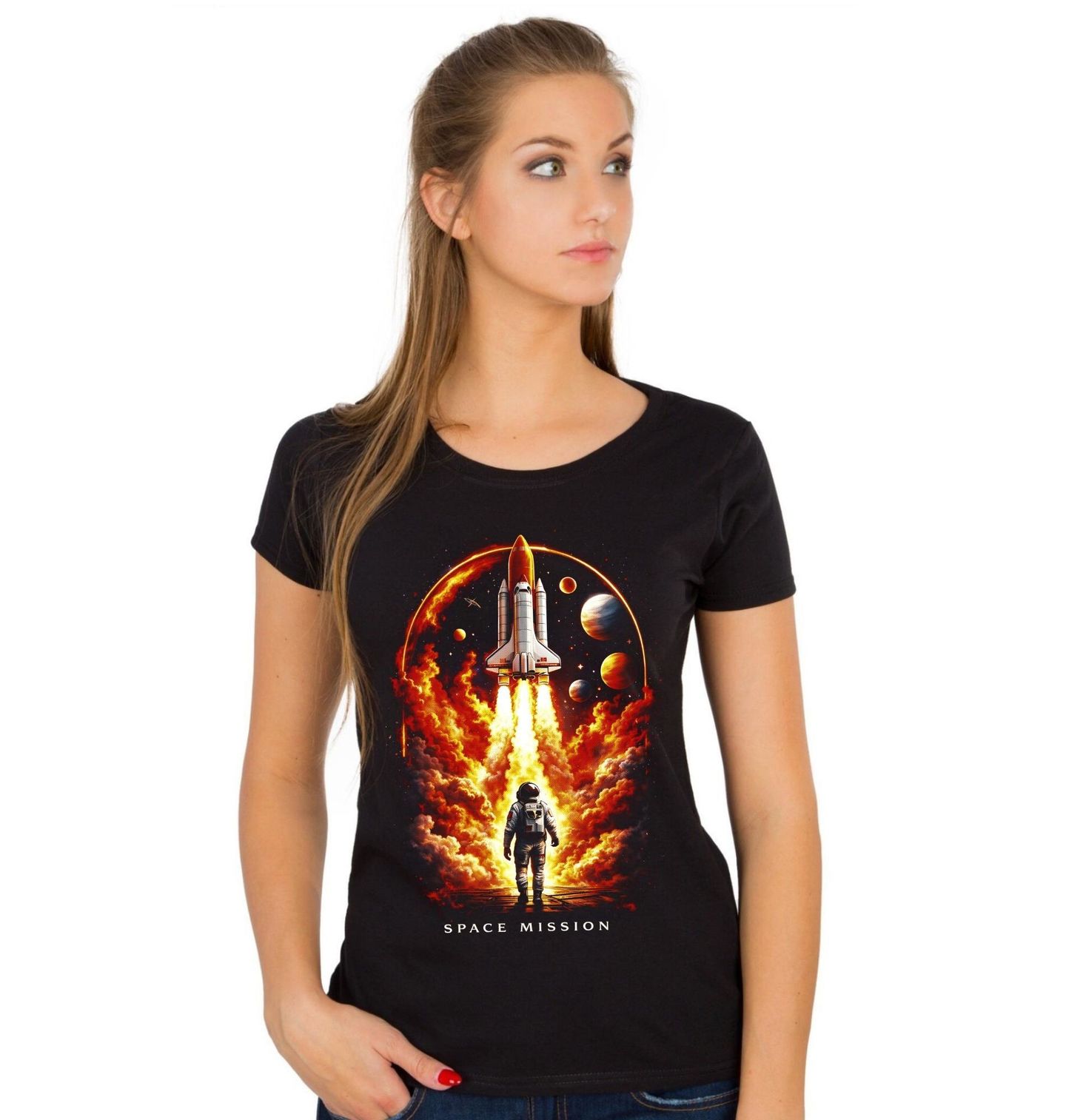 Dámské tričko Start Rakety Vesmírná mise Space Mission. Tento epický motiv zachycuje okamžik, kdy astronaut stojí tváří v tvář nekonečnu a sleduje start rakety směrem do hlubokého vesmír. Exploze energie, ohně a světla symbolizuje odvahu, objevování a touhu překonávat hranice. Tento design je ideální pro všechny, kdo milují vesmír, sci-fi a dobrodružství. Astronaut zde představuje průkopníka, který se nebojí vykročit do neznáma a posouvat hranice lidských možností.