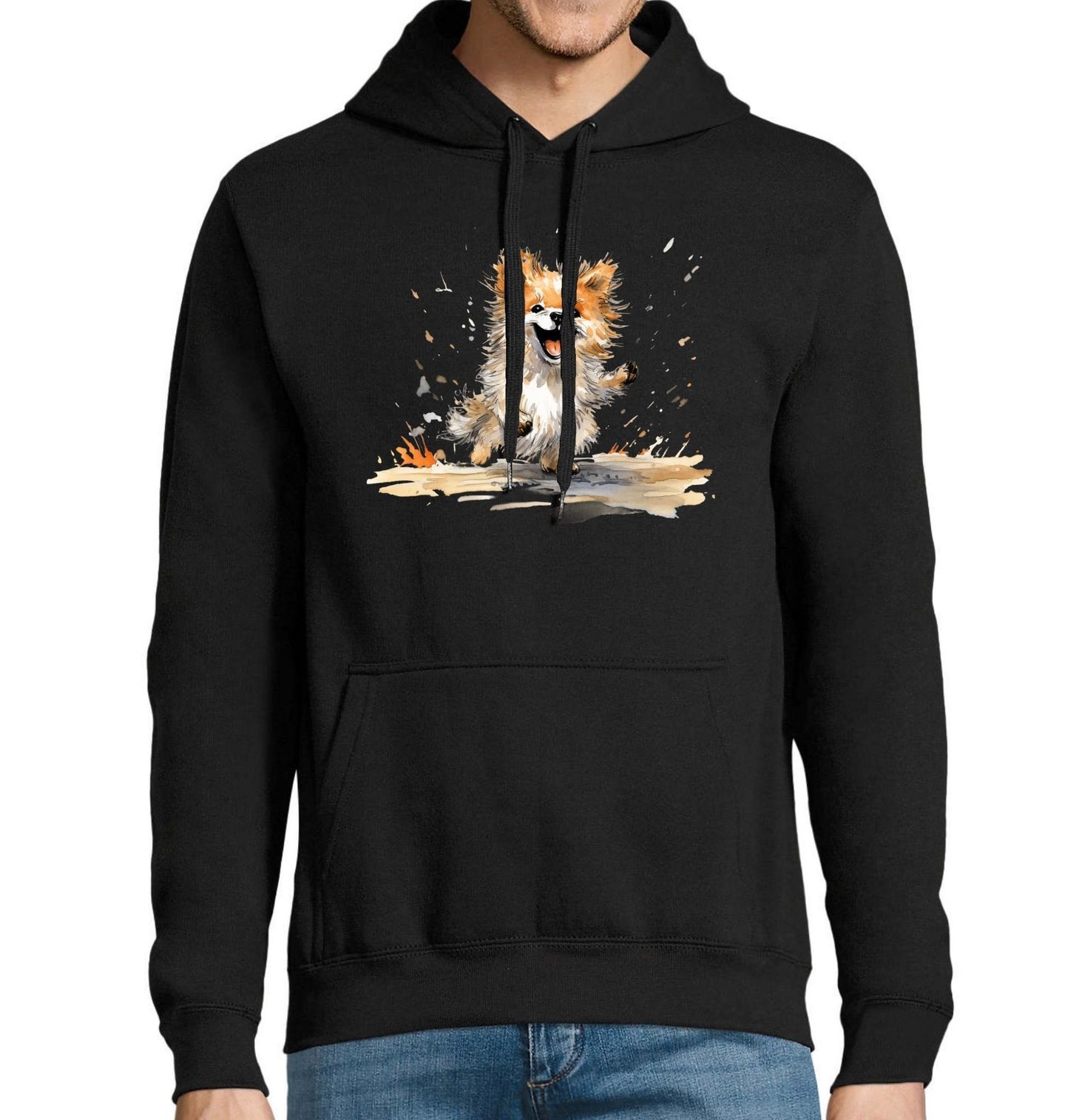 Pánská mikina Šťastný Pomeranian na Procházce. Roztomilý a plný energie – přesně takový je Pomeranian zachycený v tomto motivu! Tento malý, ale odhodlaný pes s huňatou srstí a šibalským výrazem přináší radost každému pejskaři, který miluje hravou a veselou atmosféru. Ideální pro ty, kdo chtějí mít doma či na sobě kousek pozitivní nálady v podobě chlupatého kamaráda.