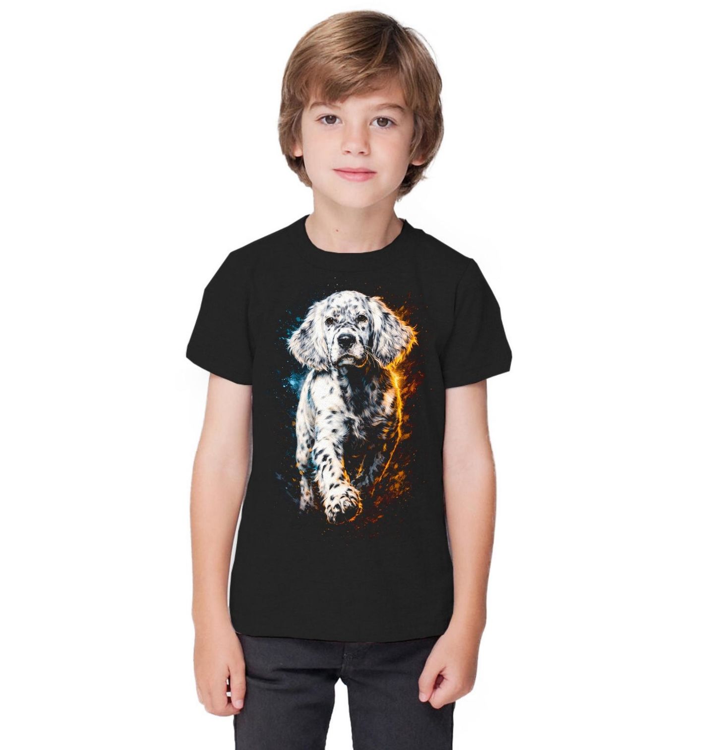 Dětské tričko Štěně Anglického setra. Tento jedinečný motiv zachycuje plemeno anglický setr, které je známé svou typickou skvrnitou srstí, ladností a loveckým talentem. Tento krásný pes působí elegantně, klidně a zároveň plný energie, což z něj dělá ideálního společníka do přírody. Každý pejskař, který miluje aktivní a ušlechtilá plemena, ocení detailní zpracování srsti i charakteristický výraz tohoto psa.