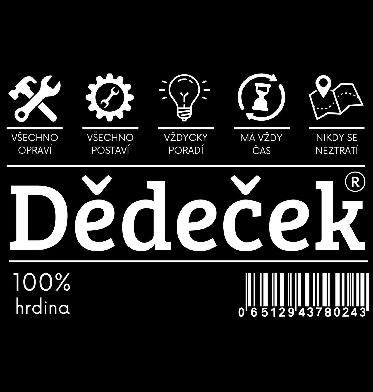 Pánská mikina Štítek Dědeček na prodej 100% hrdina. Tento design je ideální dárek pro každého, kdo má doma svého hrdinu. Děda zde není jen označení, ale symbol zkušeností, šikovnosti a moudrosti, kterou dokáže předat dál. Každý děděček si zaslouží ocenění a tento štítek to vystihuje s nadsázkou i respektem. Tento vtipný a zároveň stylový štítek popisuje vlastnosti, které má každý správný děda – všechno opraví, všechno postaví, vždycky poradí, má vždy čas a nikdy se neztratí.
