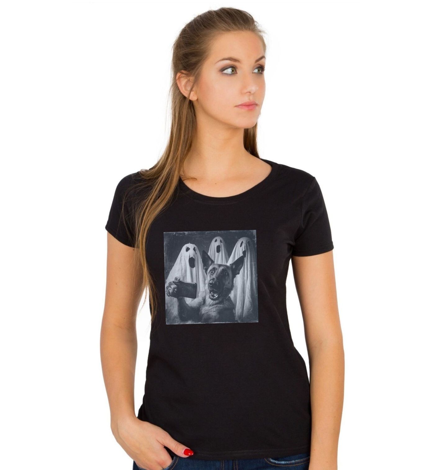 Dámské tričko Strašidelné Selfie Německý ovčák a Duchové