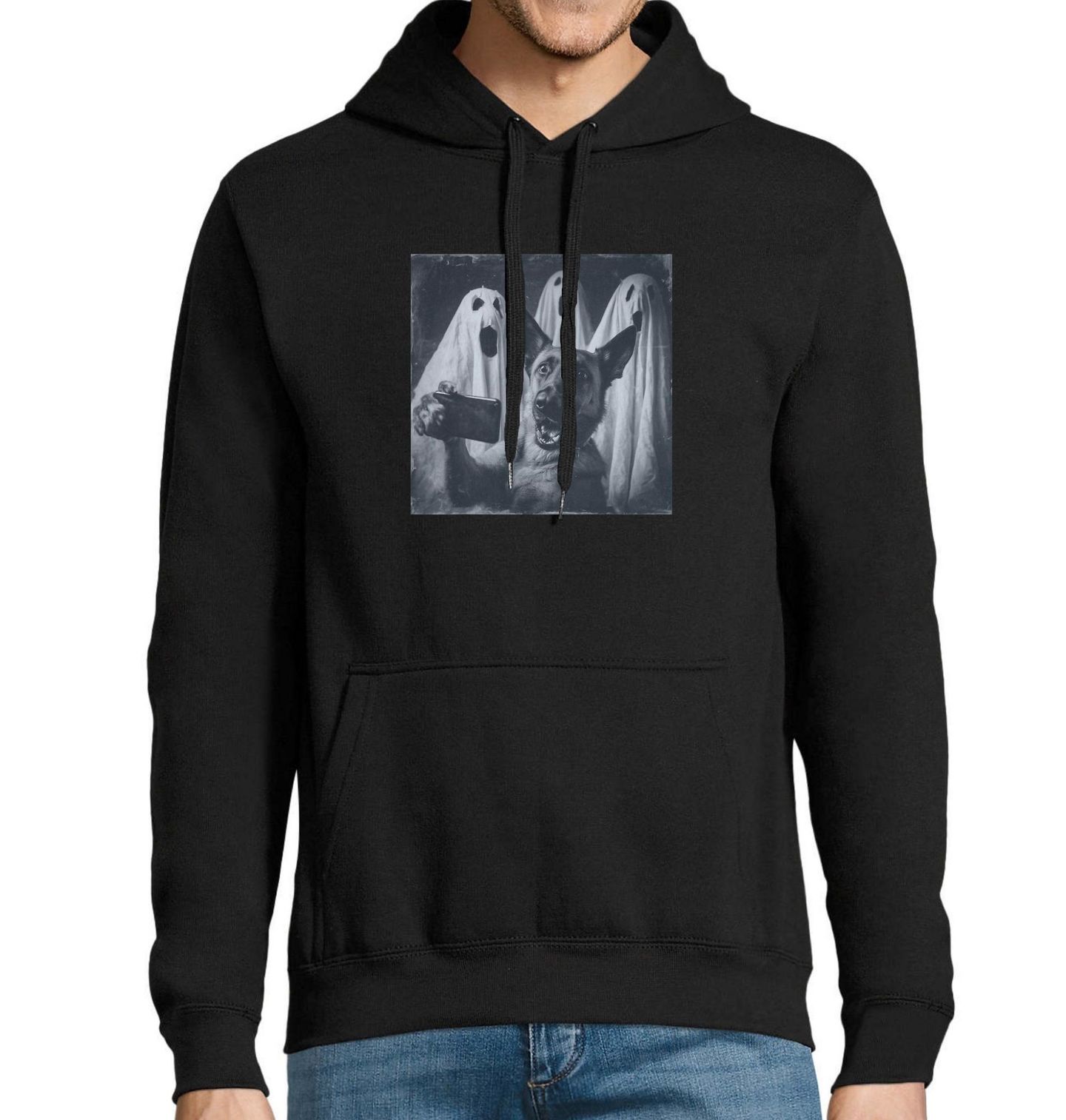 Pánská mikina Strašidelné Selfie Německý ovčák a Duchové