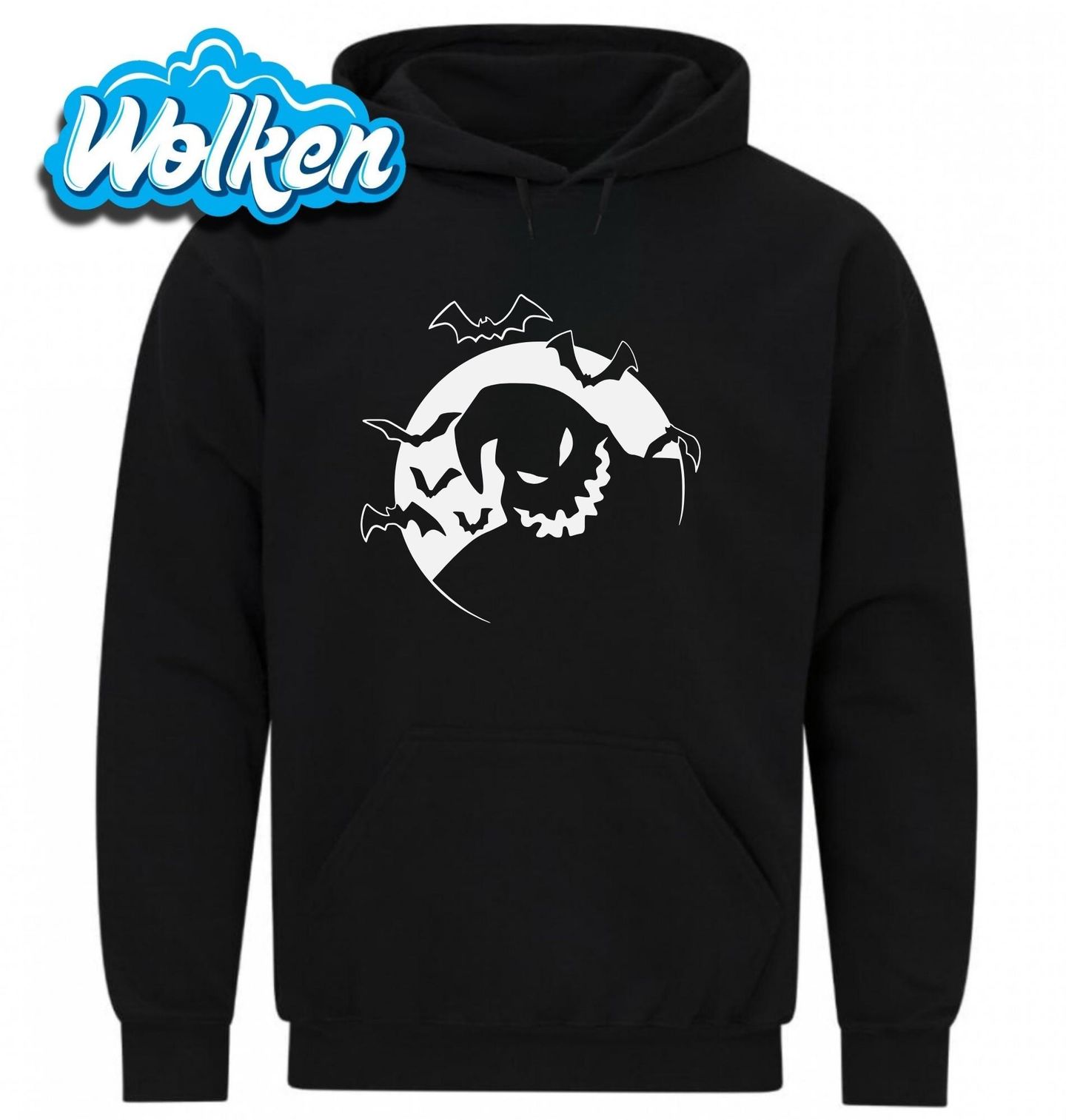 Pánská mikina Strašidelný Oogie Boogie. Oogie Boogie pod měsícem s netopýry v pozadí potěší všechny fanoušky temné pohádky The Nightmare Before Christmas (Ukradené Vánoce Tima Burtona). Stylizovaný černobílý design zachycuje hlavního záporáka v jeho děsivé, ale ikonické podobě. Ideální pro milovníky Halloweenu, gotického stylu i lehce strašidelného humoru.