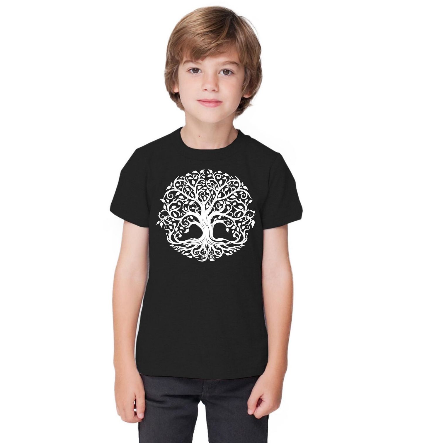 Dětské tričko Strom Života Tree of Life. Design s motivem strom života představuje nadčasový symbol propojení, růstu a vnitřní rovnováhy. Detailně zpracovaný ornamentální strom působí jemně a zároveň výrazně, což z něj dělá ideální motiv pro každodenní nošení i jako stylový doplněk do šatníku. Motiv strom života je často spojován s energií přírody, rodinnými kořeny a osobním rozvojem.