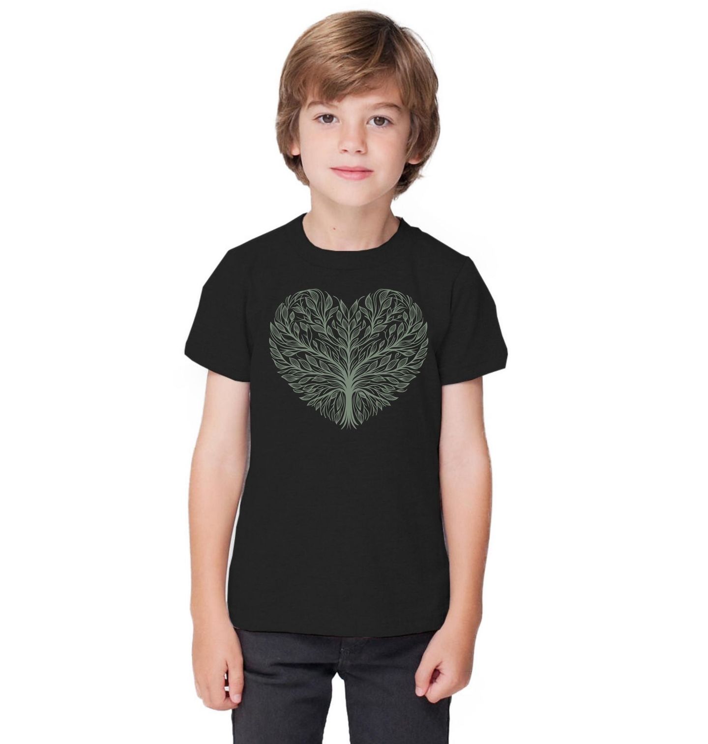 Dětské tričko Strom života ve tvaru Srdce. Jedinečný motiv strom života ve tvaru srdce spojuje sílu přírody s hlubokým symbolem lásky. Detailně propracovaný design vytváří elegantní kompozici, kde se větve a listy prolínají do tvaru, který připomíná srdce – znak emocí, propojení a života. Tento motiv strom života je ideální pro každého, kdo vnímá krásu přírody i význam symboliky.