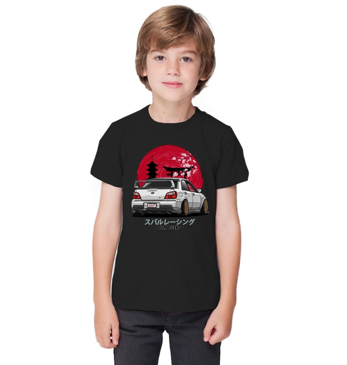 Dětské tričko Subaru pod Sakurami JDM Legend. Ikonické auto v siluetě japonského závodního stylu s pozadím červeného slunce, sakur a tradiční brány torii. スバルレーシング (Subaru Rēshingu) – znamená „Subaru Racing“. Symbolizuje rychlost, sílu a ducha japonských strojů, které ovládly ulice i závodní tratě.