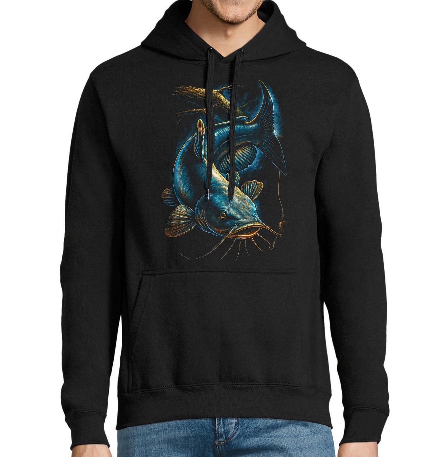 Pánská mikina Sumec velký. Motiv zachycuje sumce velkého, největší sladkovodní rybu Evropy a legendu mezi dravci. Tento impozantní obr se skrývá v hlubinách, pod kořeny stromů a v temných tůních, kde trpělivě čeká na kořist. Design je stvořený pro všechny, pro které je rybaření víc než jen koníček. Každý rybář ví, že lov sumce je o respektu a zkušenostech.