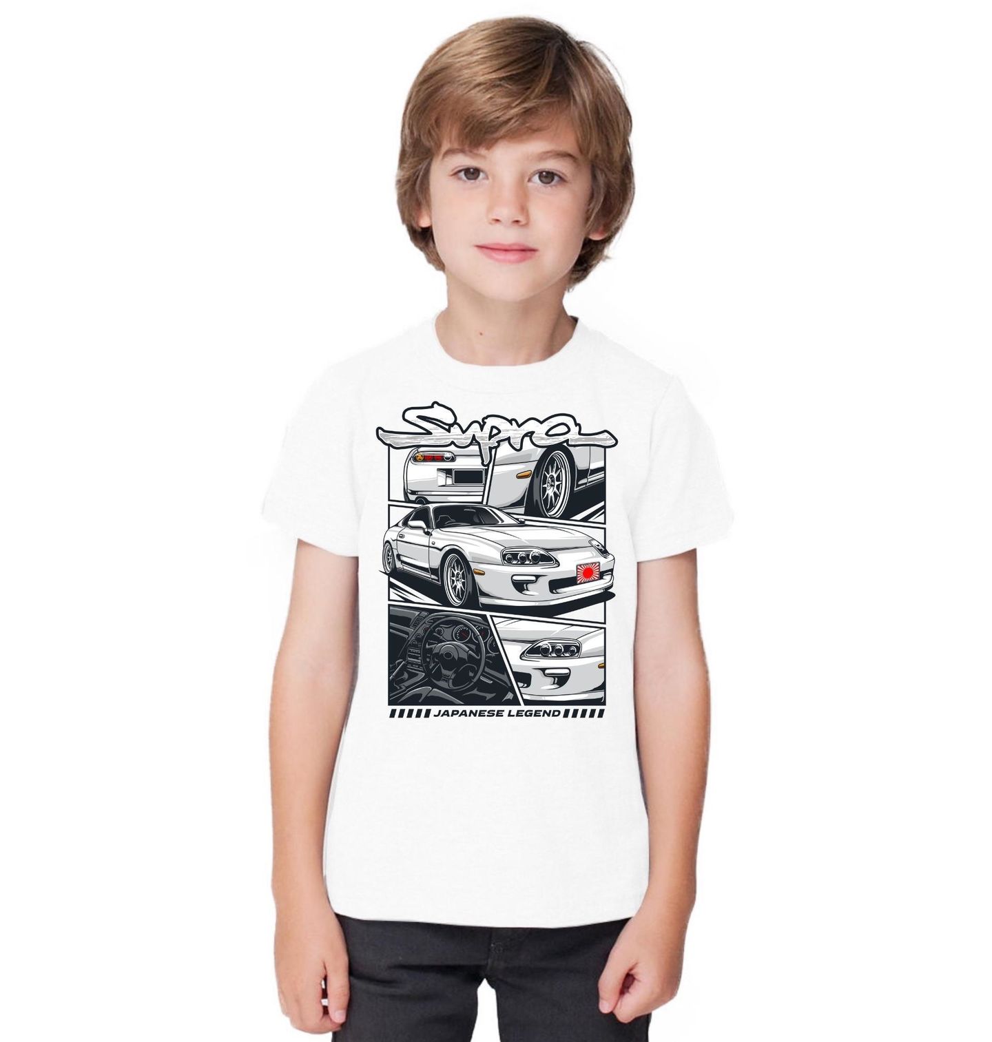 Dětské tričko Supra Japanese Legend. Inspirací je slavná Toyota Supra MK4 – vůz známý svým výkonem, úpravami a nezaměnitelným stylem. Stylový komiksový motiv představuje ikonické japonské sportovní auto v čistém JDM designu, který zaujme každého fanouška tuningu a rychlých strojů. Detailní kresba zachycuje legendární siluetu, interiér i charakteristické zadní světla, díky nimž je toto auto okamžitě rozpoznatelné.