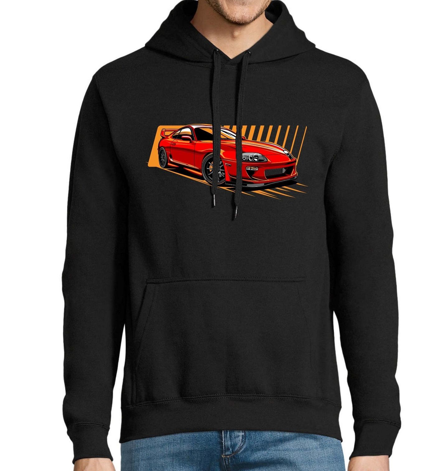 Pánská mikina Supra MK4 JDM. Výrazný design zachycuje ikonické japonské auto ve sportovní úpravě, inspirované legendárními modely z éry JDM. Auto na motivu připomíná ikonický japonský sportovní model ve stylu Toyota Supra MK4 – poznat jde podle kulatých světlometů, širokého bodykitu a výrazného zadního křídla. Nejde ale nutně o oficiální licenci, spíš o stylizovanou ilustraci inspirovanou JDM scénou.