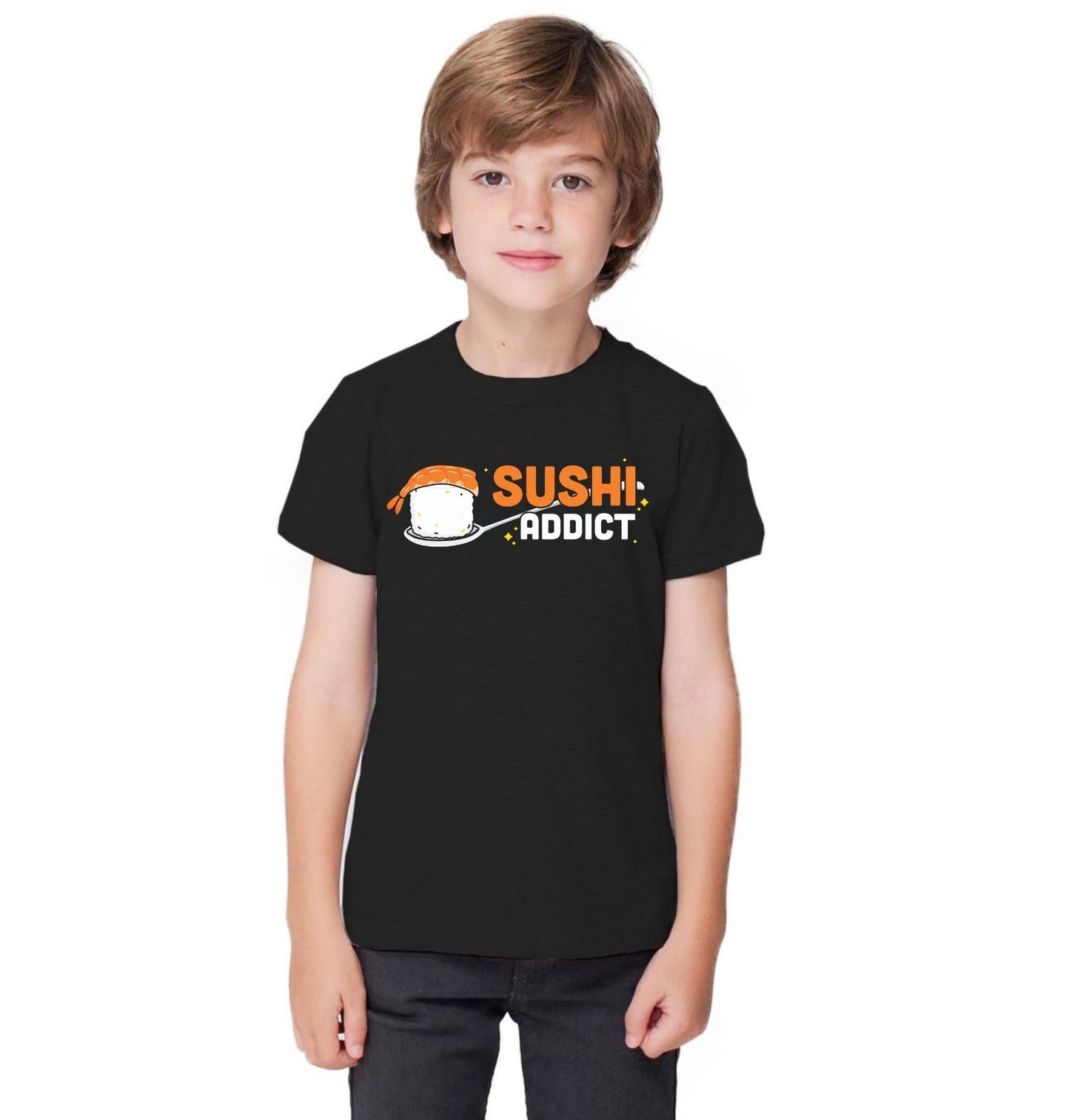Dětské tričko Sushi Addict Závislý na Sushi. Stylový motiv s nápisem „Sushi Addict“ (v překladu „závislý na sushi“) zobrazuje chutný kousek sushi na hůlkách. Tento design je ideální pro všechny milovníky sushi, japonské kuchyně a food tématiky. Moderní grafika a výrazné barvy dělají z tohoto motivu perfektní volbu pro každého, kdo si bez sushi nedokáže představit život.