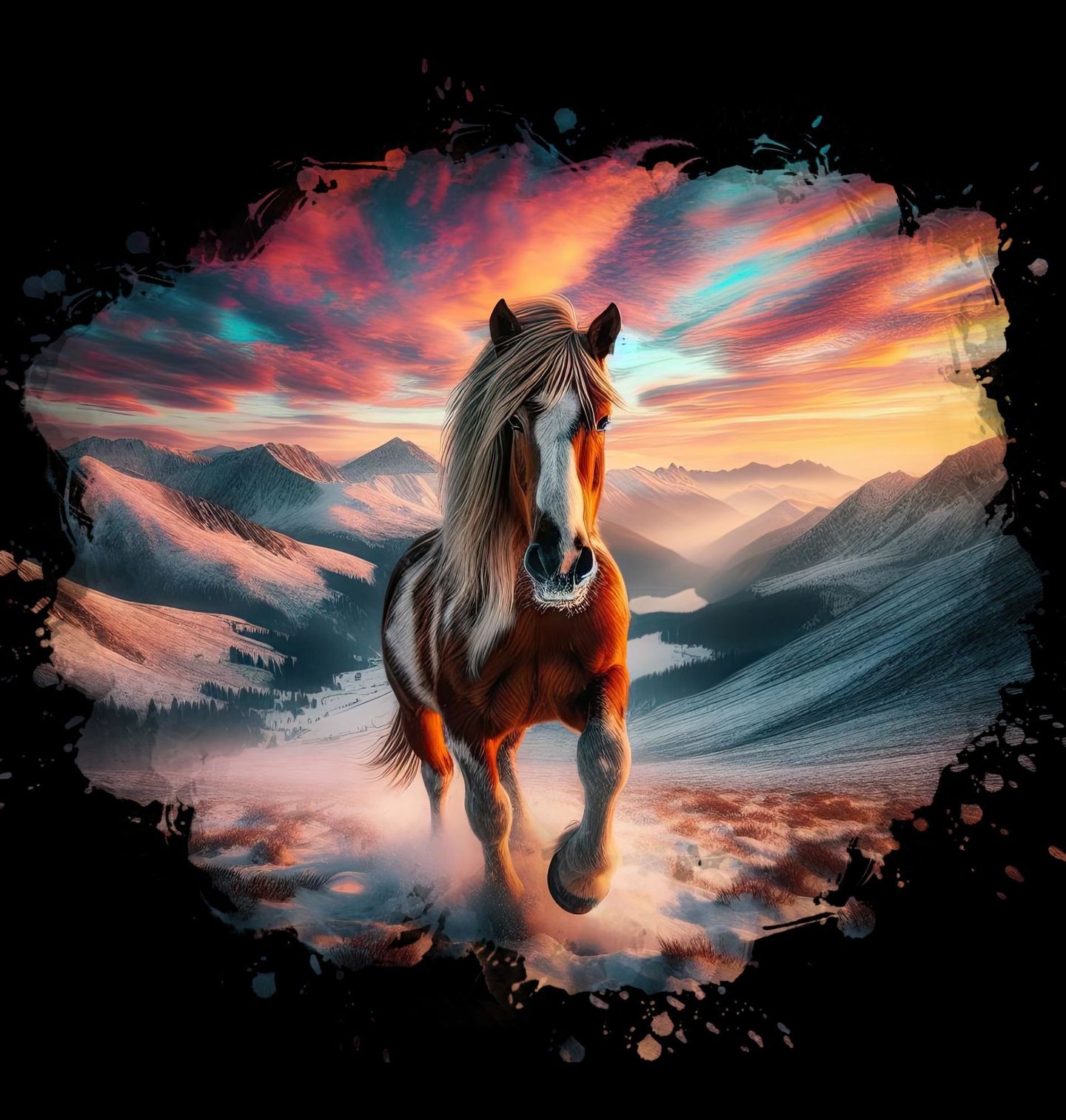 Pánské tričko Svobodný Kůň v Horách. Tenhle kůň si na nic nehraje. Prostě běží, protože může. Před ním otevřené hory, pod kopyty sníh a v hlavě klid, který dneska hledáme všichni. Motiv zachycuje sílu, eleganci a nespoutanost, kterou koně mají přirozeně v sobě. Je to obraz svobody, ticha a prostoru, kde se dýchá trochu líp než ve městě.