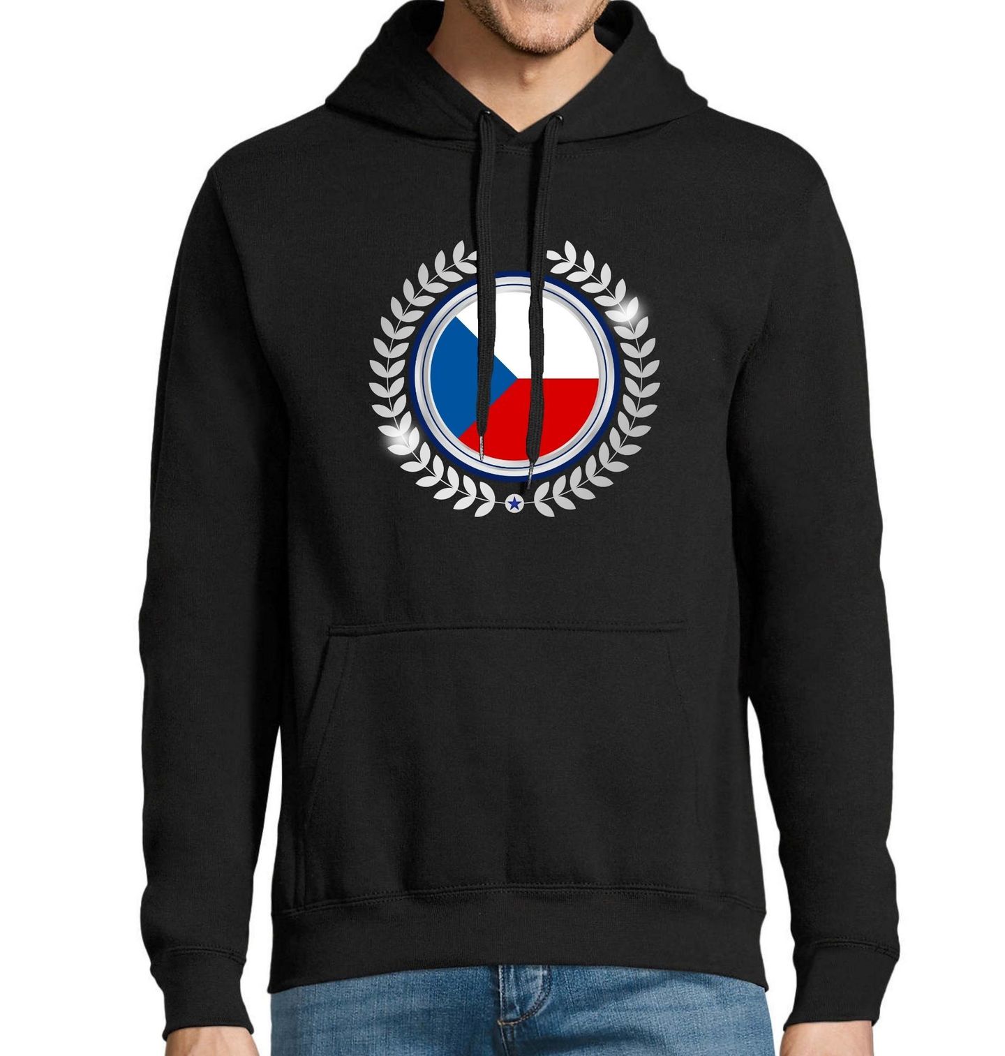 Pánská mikina Symbol vítězství Emblém Česka. Česká republika uprostřed slavnostního emblému představuje Česko jako hrdý národ. Národní vlajka jako symboly síly a úspěchu. Vavřínové listy a hvězda – vytváří tak výrazný znak, který vyzařuje vítězství, respekt a národní hrdost.