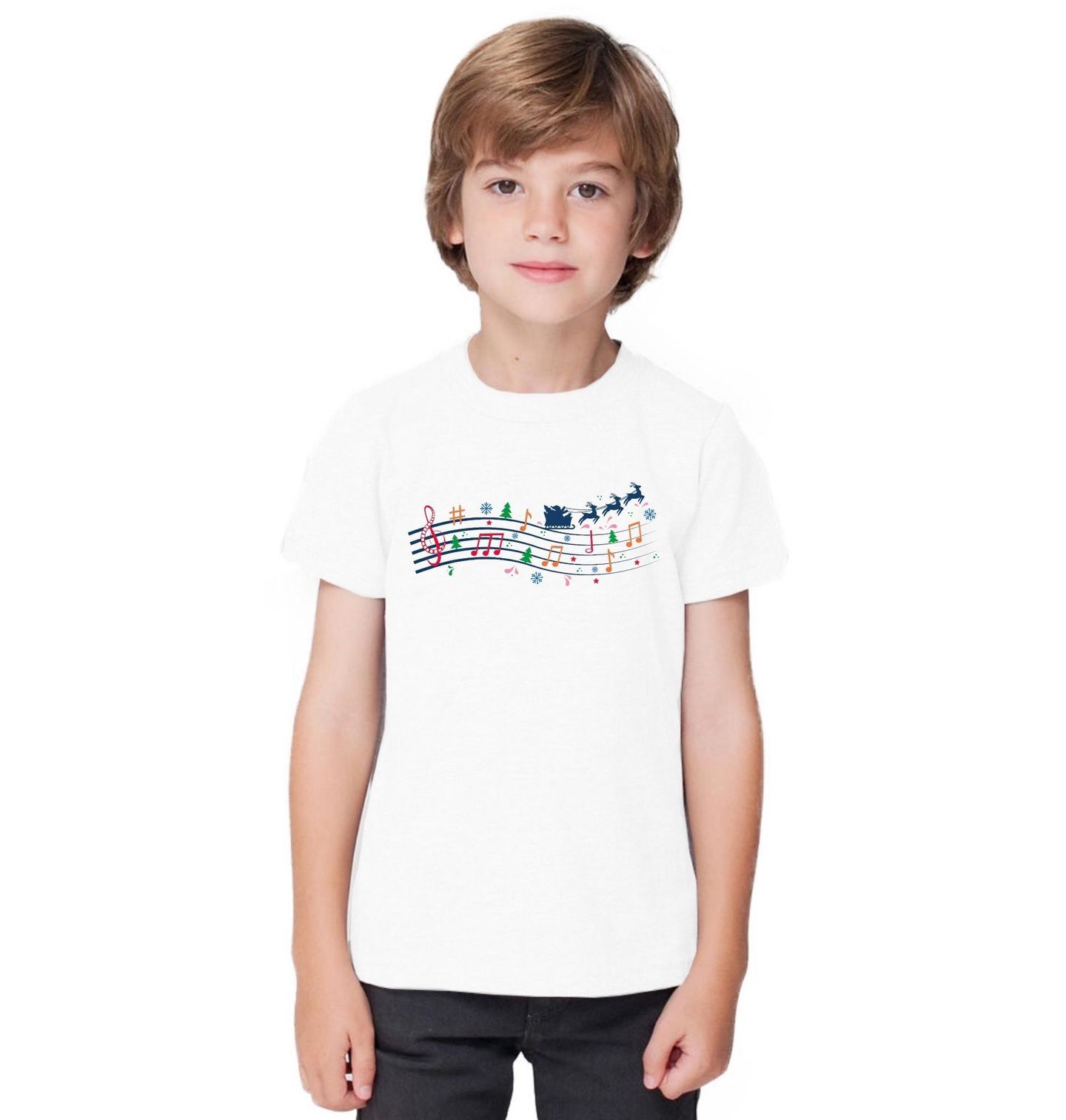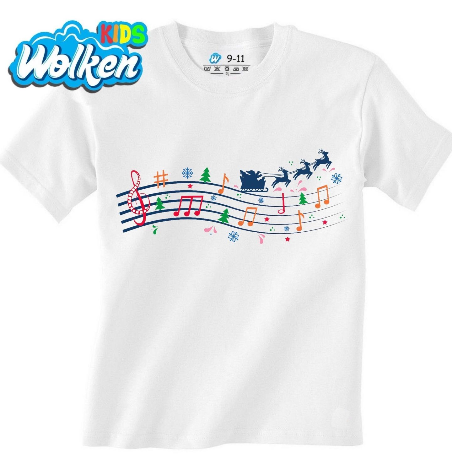 Dětské tričko Symfonie Vánočních Koled. Originální motiv, na kterém Santa se sobím spřežením uhání přímo po kouzelné hudební lince plné barevných tónů a vánočních symbolů. Vánoce a noty se tady spojují do jedinečné podívané, která potěší všechny milovníky hudby i sváteční atmosféry.