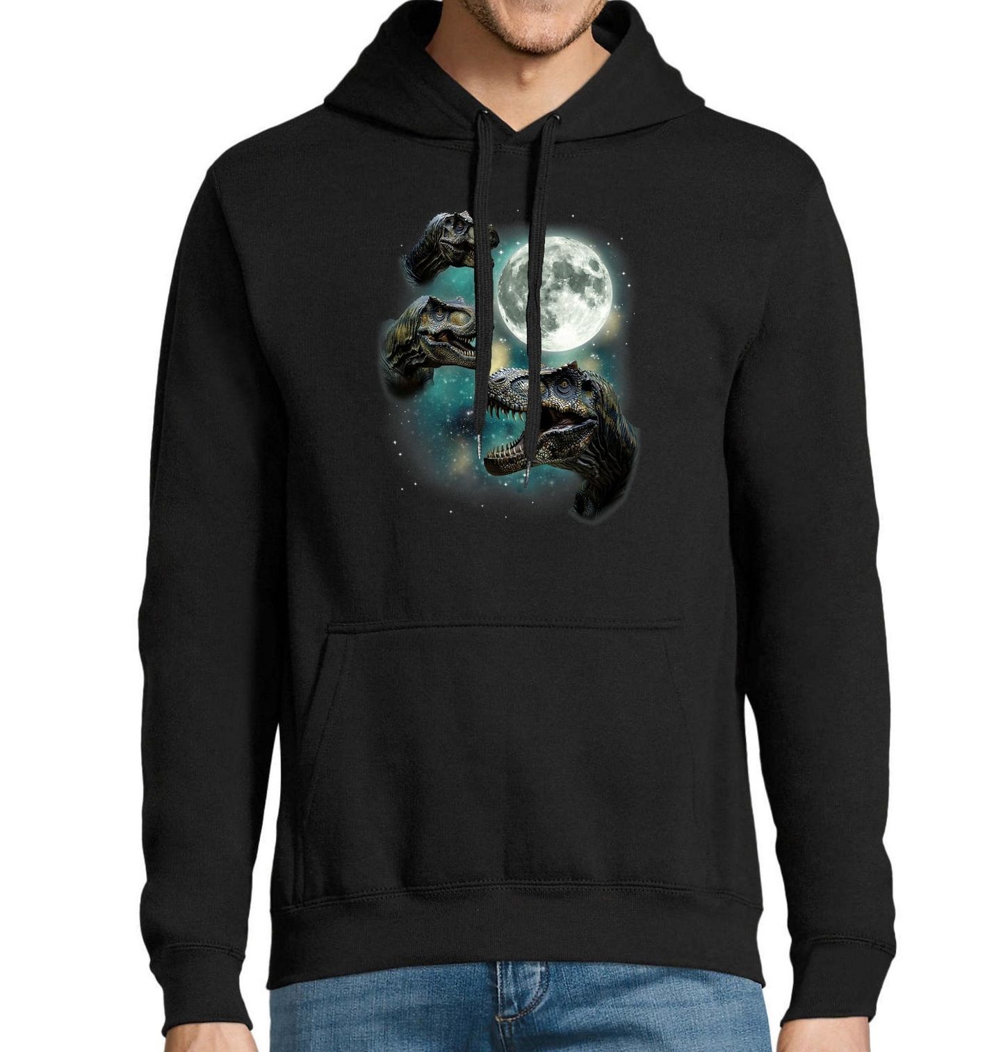 Pánská mikina T-Rexové vyjící na Měsíc. Tady se historie potkává s memy – dinosaurus T-Rex v trojité dávce hledí (a řve) na zářivý měsíc uprostřed vesmíru. Parodie na legendární „Three Wolf Moon“ přináší prehistorický humor, který ocení každý fanoušek dinosaurů, měsíce a internetové zábavy. Tento motiv je jako stvořený pro ty, kdo chtějí tričko, které je stejně hlasité a nezapomenutelné jako samotný dinosaurus.