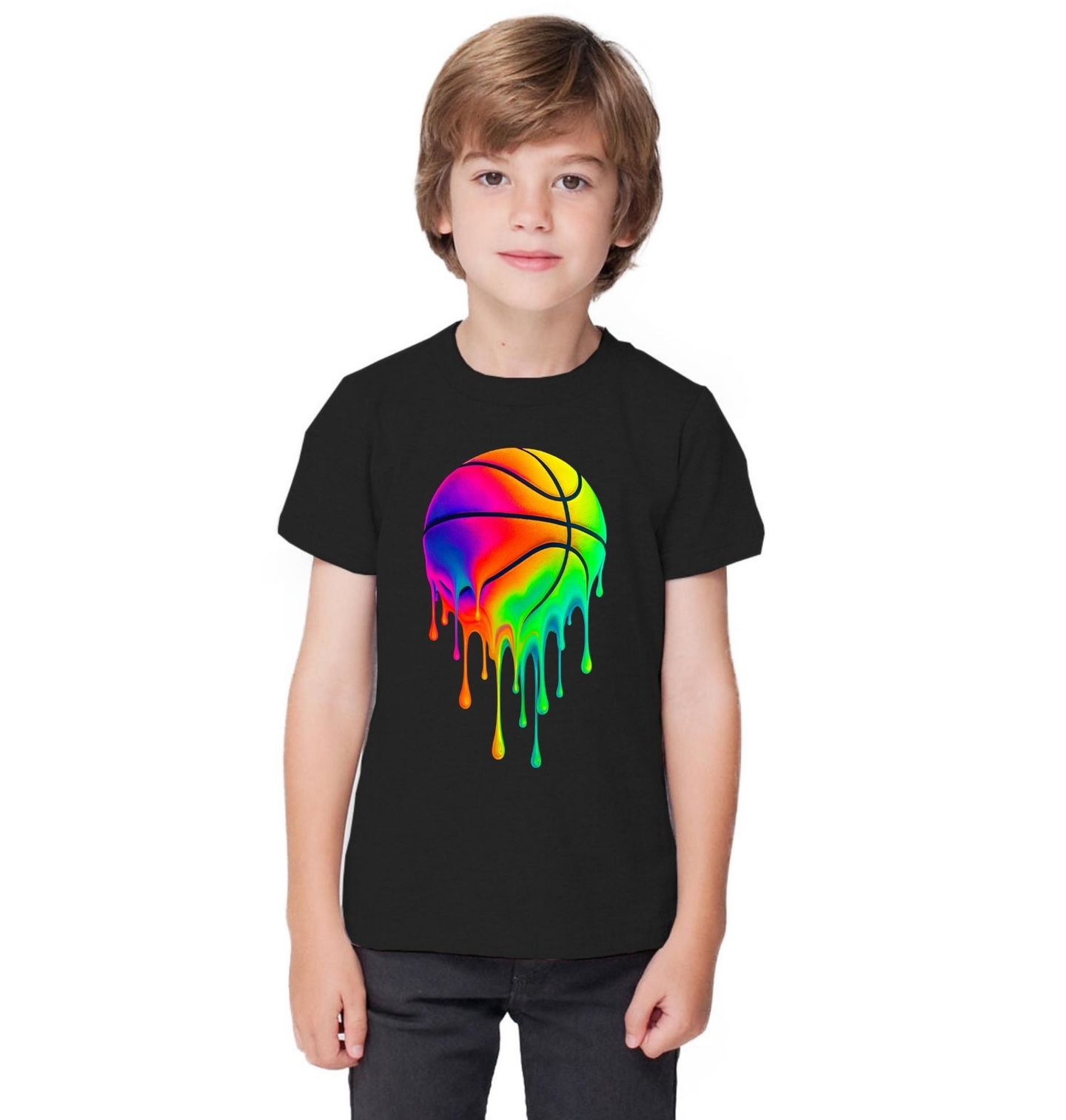 Dětské tričko Tající Basketbalový Míč. Neonový míč je ideální pro každého, kdo miluje sport, barvy a nekonvenční styl. Tento motiv zobrazuje barevně roztavený míč, který doslova kape energií. Vhodné pro fanoušky basketbalu, umění nebo streetwear módy. Vyjádři svou vášeň pro sport naplno a bez kompromisů.