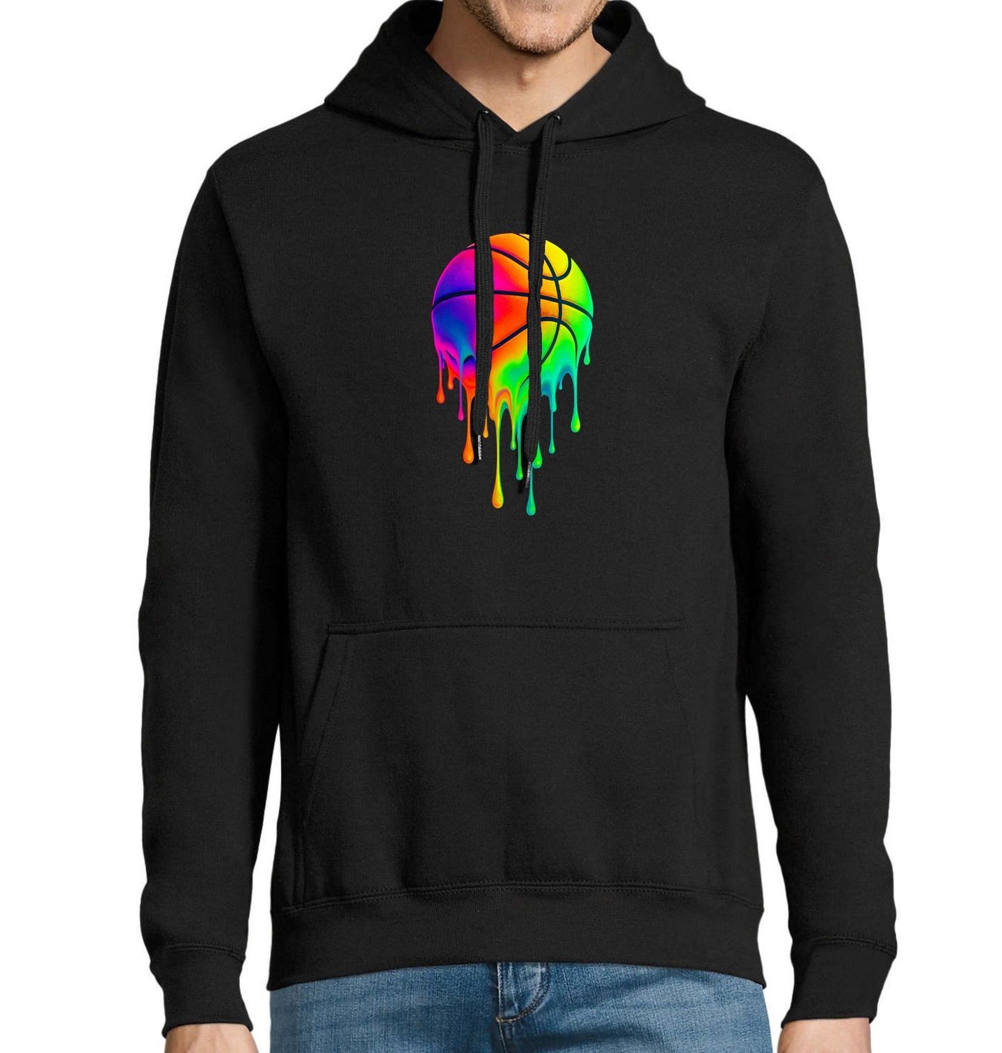 Pánská mikina Tající Basketbalový Míč. Neonový míč je ideální pro každého, kdo miluje sport, barvy a nekonvenční styl. Tento motiv zobrazuje barevně roztavený míč, který doslova kape energií. Vhodné pro fanoušky basketbalu, umění nebo streetwear módy. Vyjádři svou vášeň pro sport naplno a bez kompromisů.