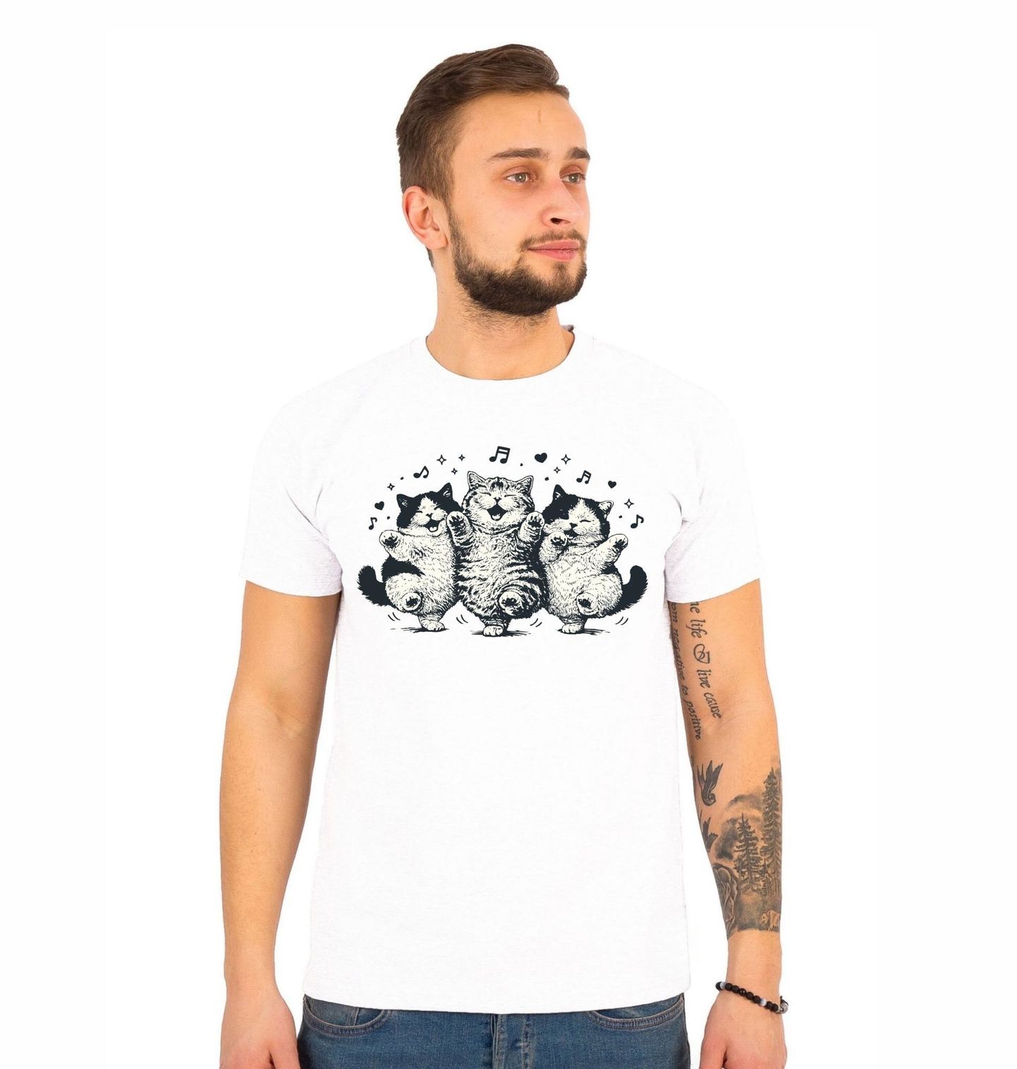 Pánské tričko Tancující Koťátka. Tento originální design vyzařuje pozitivní energii, lehkost a dobrou náladu, kterou si zamiluje každý milovník zvířat i hudby. Kočka v tomto provedení působí živě a zábavně, zatímco motiv zpěv a hudebních not dodává celému obrázku dynamiku a pohyb. Spojení hudby a roztomilosti vytváří jedinečný styl, který zaujme na první pohled.
