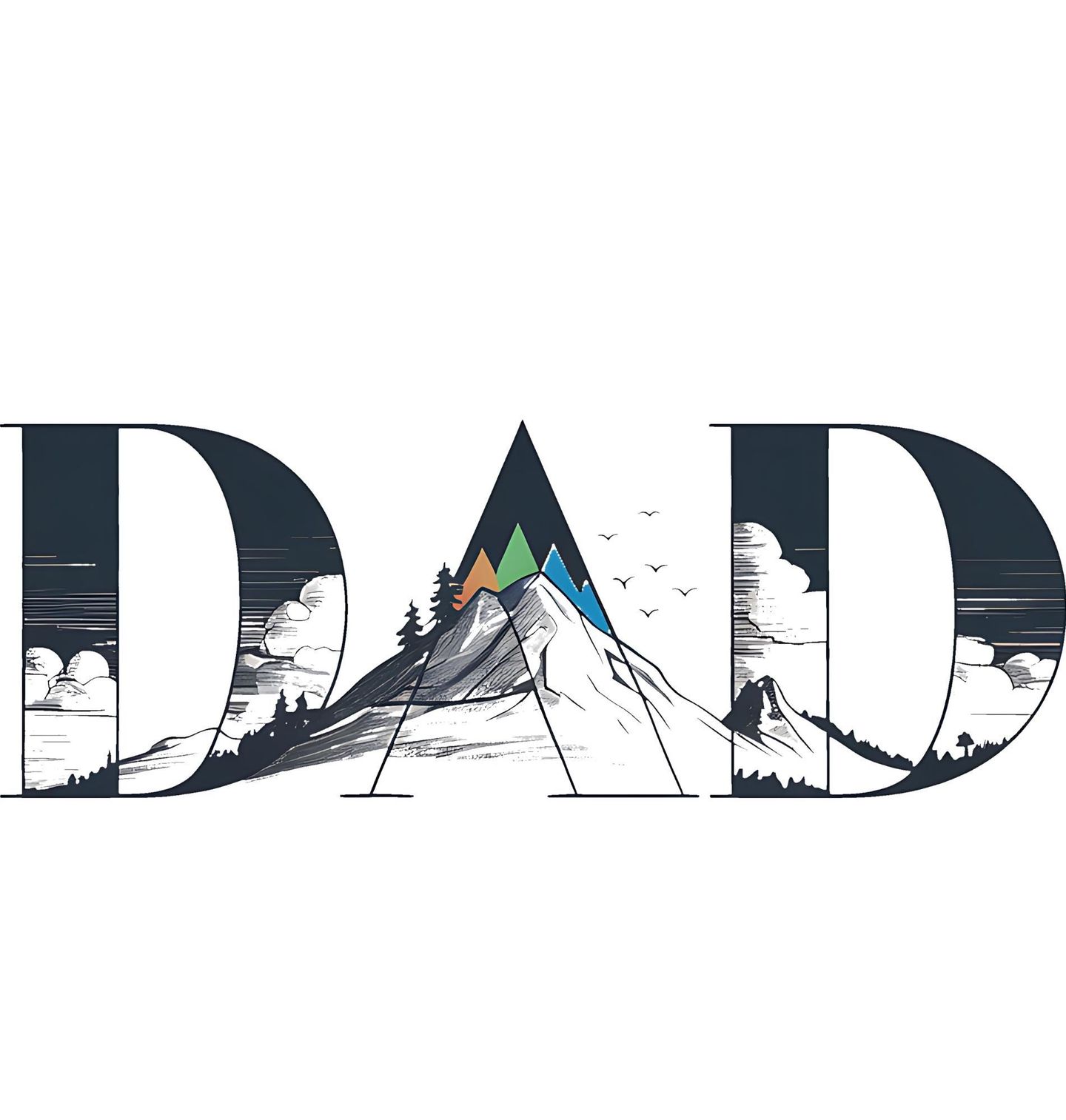 Pánské tričko Táta a Hory. Moderní a stylový motiv spojuje slovo „DAD“, neboli „Táta“, s horskou scenérií, kde dominují hory jako symbol svobody, síly a dobrodružství. Tento design vystihuje, že táta je nejen opora rodiny, ale i milovník přírody a dobrodruh, kterého lákají právě hory a nové výzvy.