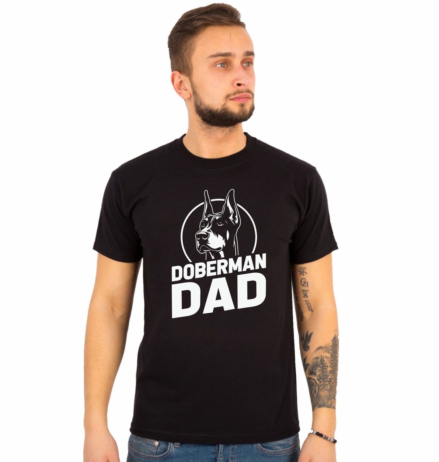 Pánské tričko Táta Dobrmana Doberman Dad. Tento výrazný motiv je poctou plemeni dobrman, které je symbolem inteligence, loajality a přirozené autority. Design s nápisem „Doberman Dad“ jasně říká, že jeho nositel je hrdý pejskař, pro kterého není pes jen mazlíček, ale plnohodnotný člen rodiny.