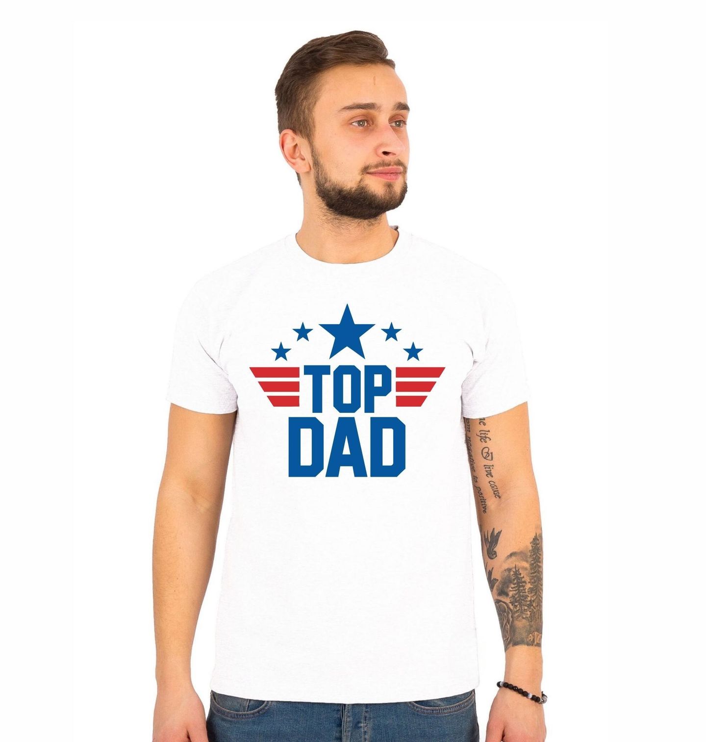 Pánské tričko Táta Pilot Top Dad Top Gun. Stylový design s výraznou hvězdou a křídly přináší ikonickou atmosféru, kterou proslavil film Top Gun. Tento výrazný motiv v sobě spojuje jednoduchost, sílu a nostalgii, takže perfektně zapadne do každodenního outfitu i jako originální dárek. Retro barevné provedení dodává grafice autentický vintage vzhled, který nikdy nevyjde z módy.